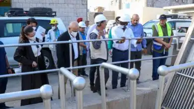 وزير المياه ووفد البنك الدولي يطلعان على التشغيل التجريبي لمشروع محطة الضخ بعدن