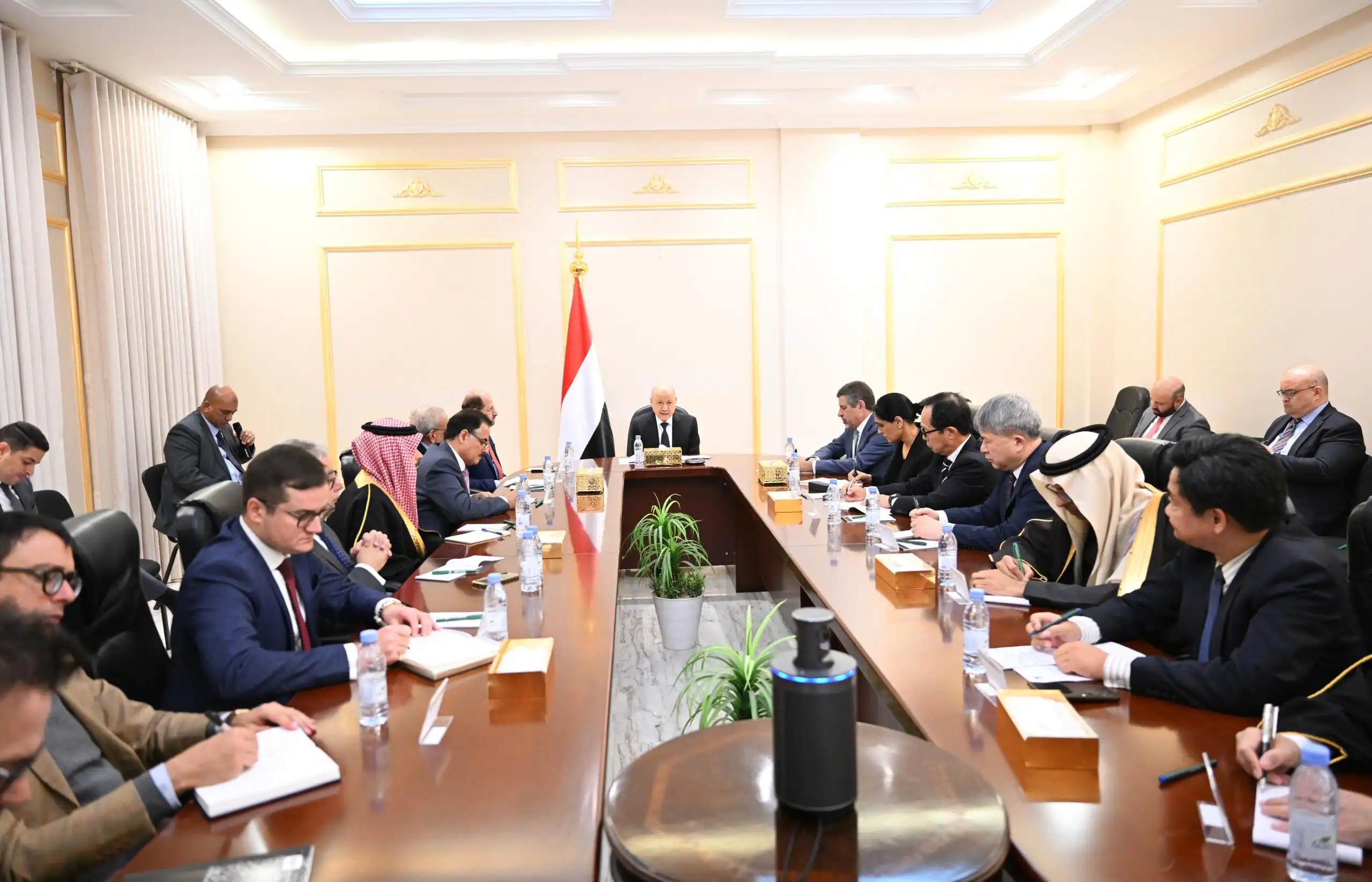 حثّ فخامة الرئيس الدكتور رشاد محمد العليمي، رئيس مجلس القيادة الرئاسي، المجتمع الدولي على ترجمة القرارات السيادية للدولة اليمنية إلى إجراءات عملية داخل مجلس الأمن، وذلك خلال لقائه في الرياض سفراء الدول الراعية للعملية السياسية، بحضور وزير الخارجية الدكتور شائع الزنداني.