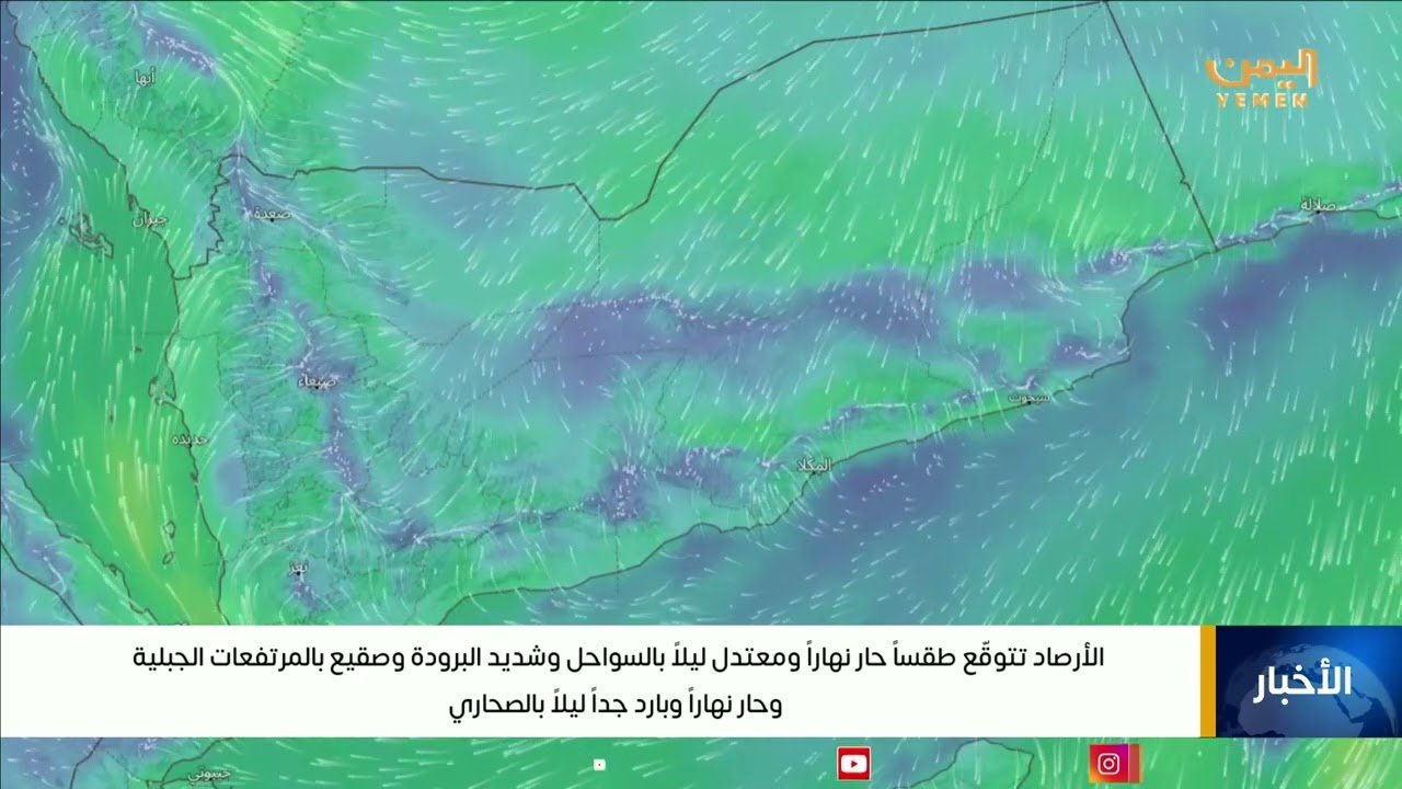 الأرصاد تتوقّع طقساً حار نهاراً ومعتدل ليلاً بالسواحل وشديد البرودة وصقيع بالمرتفعات الجبلية