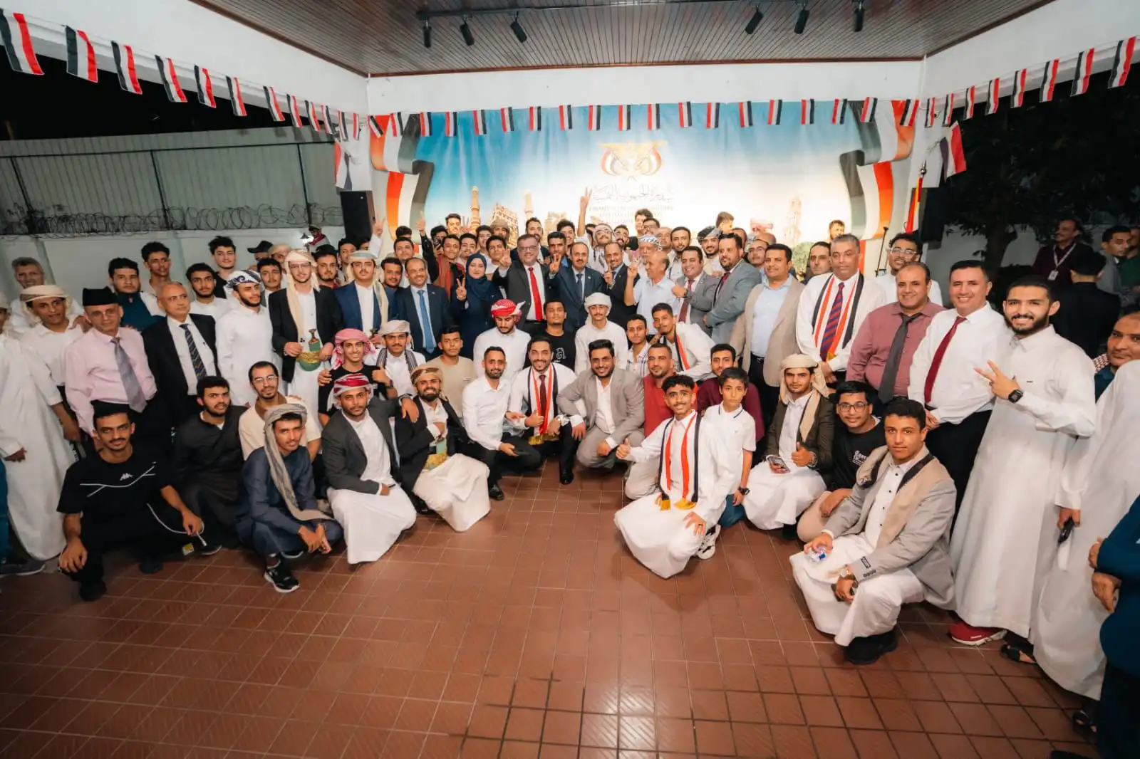 وجرت مراسيم الاحتفال بحضور أبناء الجالية اليمنية من رجال ونساء وأطفال، ورجال أعمال وأكاديميين وطلاب، في لوحة وطنية فريدة عكست وحدة اليمنيين في الداخل والخارج حول ثورتهم الخالدة ومبادئها في الحرية والكرامة والسيادة الوطنية.