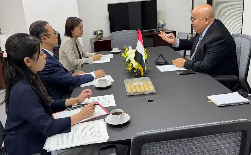 بحث سفير اليمن لدى طوكيو، عادل السنيني، اليوم، مع المدير العام للشرق الأوسط وأوروبا في الوكالة اليابانية للتعاون الدولي (جايكا)، توياما كي، وفريقه، سبل تعزيز التعاون الثنائي وتوسيع نطاق المشاريع والبرامج التي تنفذها الوكالة في اليمن.
