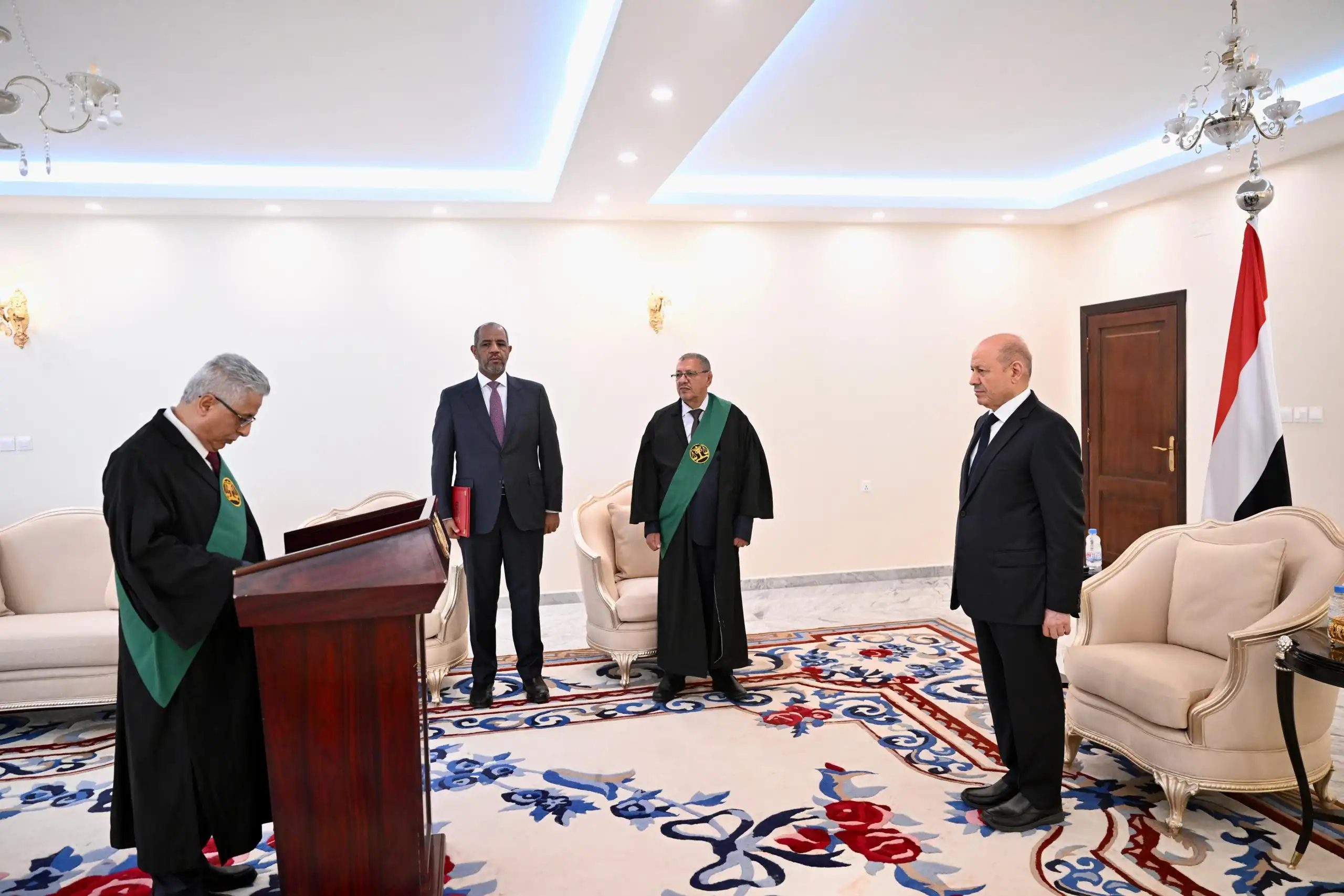 أدى اليمين القانونية أمام فخامة الرئيس الدكتور رشاد محمد العليمي، رئيس مجلس القيادة الرئاسي، اليوم الخميس، القاضي سهل محمد حمزة ناصر، بمناسبة تعيينه امينا عاما لمجلس القضاء الاعلى، عضوا في المجلس، وذلك بحضور رئيس مجلس القضاء الاعلى القاضي محسن يحيى طالب.