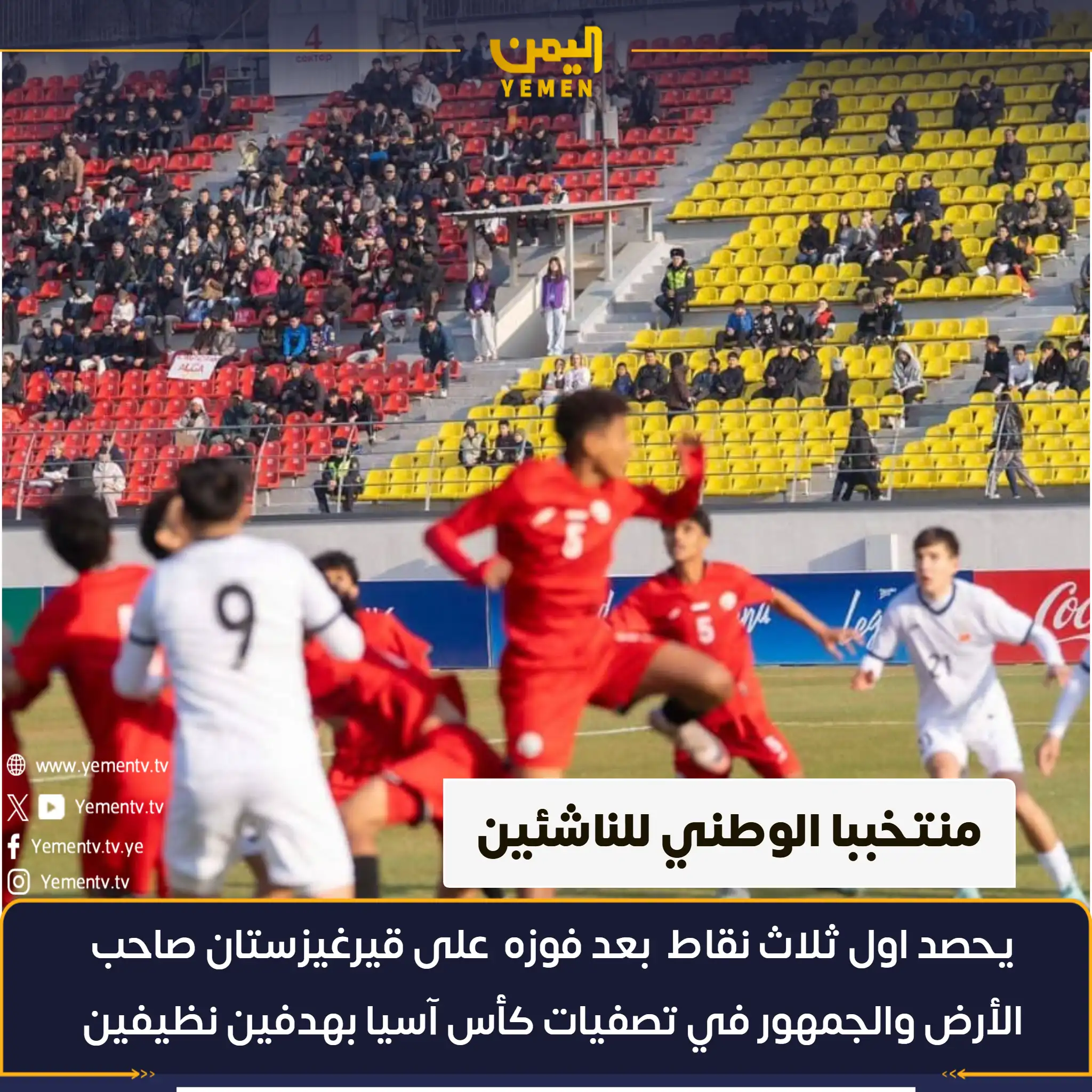 حقق المنتخب الوطني للناشئين فوزاً ثميناً على نظيره قيرغيزستان صاحب الأرض والجمهور بنتيجة 2-0 ضمن منافسات تصفيات كأس آسيا للناشئين ليحصد بذلك أول ثلاث نقاط له في مشوار التصفيات