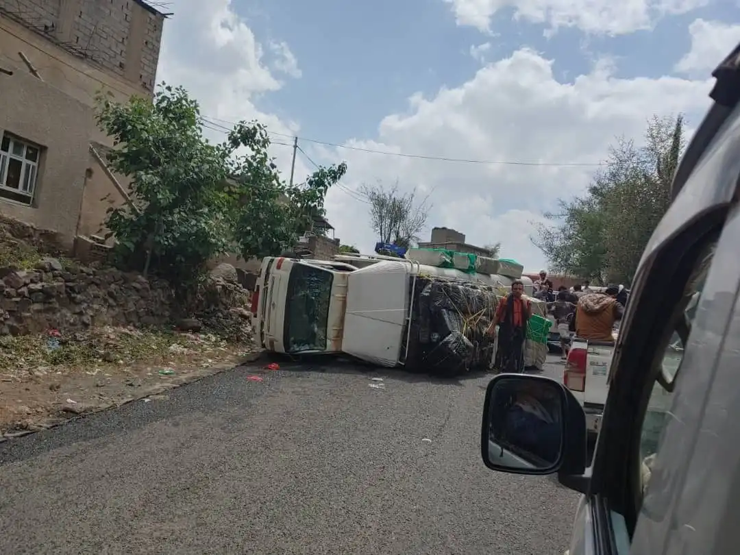 انقلاب شاحنتين يوقف حركة السير نحو صنعاء لساعات