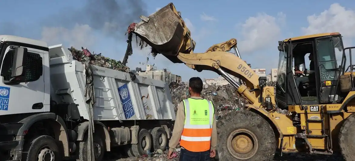 برنامج الأمم المتحدة الإنمائي يبدأ إزالة 370 ألف طن من النفايات وسط قطاع غزة