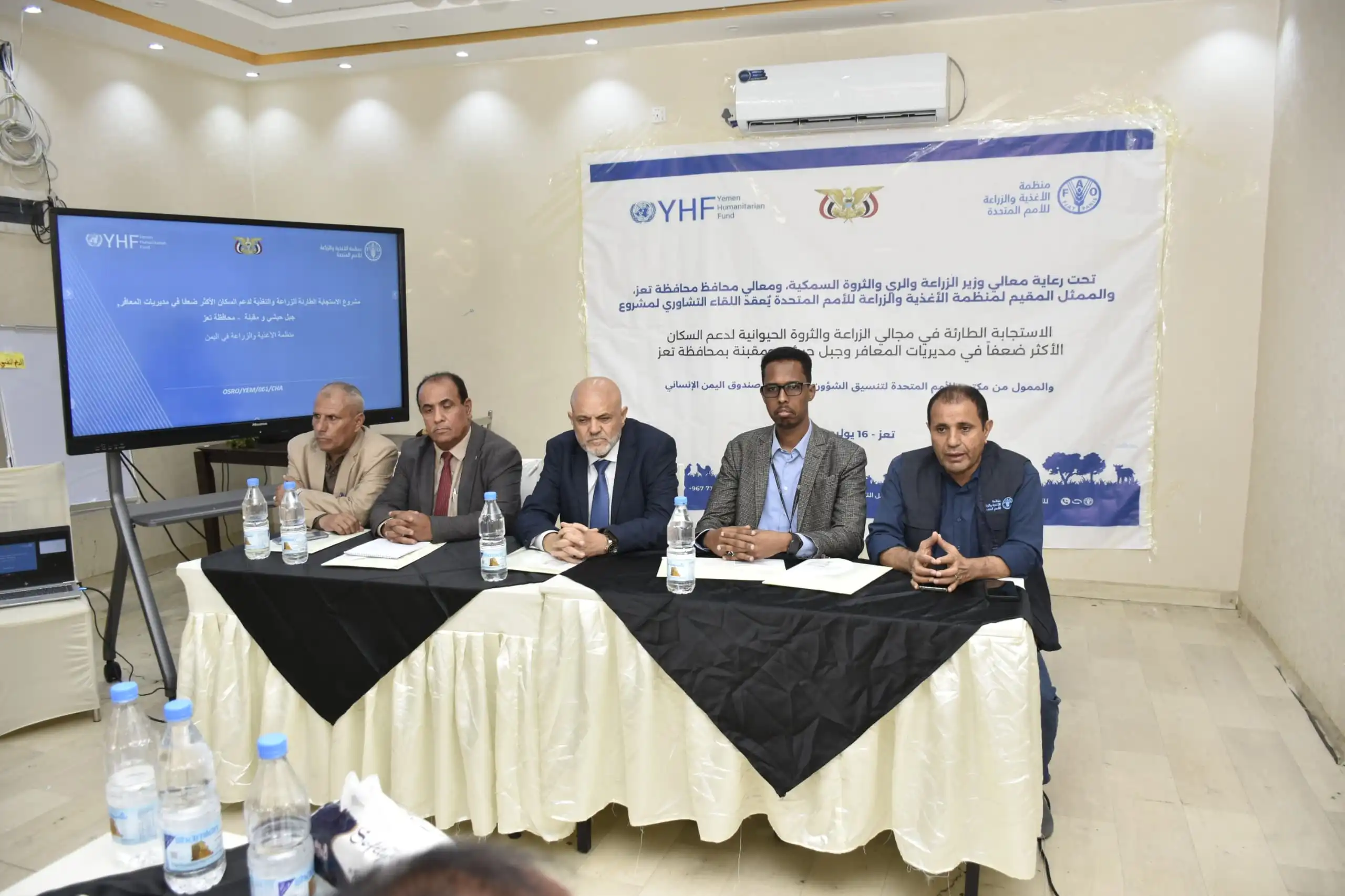 دشنت السلطة المحلية بمحافظة تعز، اليوم، مشروع الاستجابة الطارئة للزراعة والتغذية لدعم السكان الأكثر ضعفاً في مديريات المعافر وجبل حبشي ومقبنة، بالشراكة مع منظمة الأغذية والزراعة للأمم المتحدة (الفاو)، وبالتنسيق مع وزارة الزراعة والري والثروة السمكية.