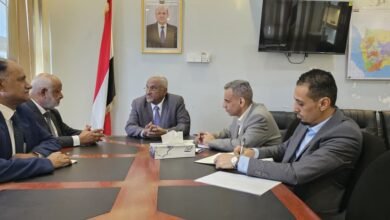 دشن امين عام المجلس المحلي بمحافظة شبوة عبدربه هشله توزيع قافلة المساعدات الغذائية المقدمة من قوات درع الوطن للاسر الفقيرة والنازحة بمدينة ومديرية عتق.
