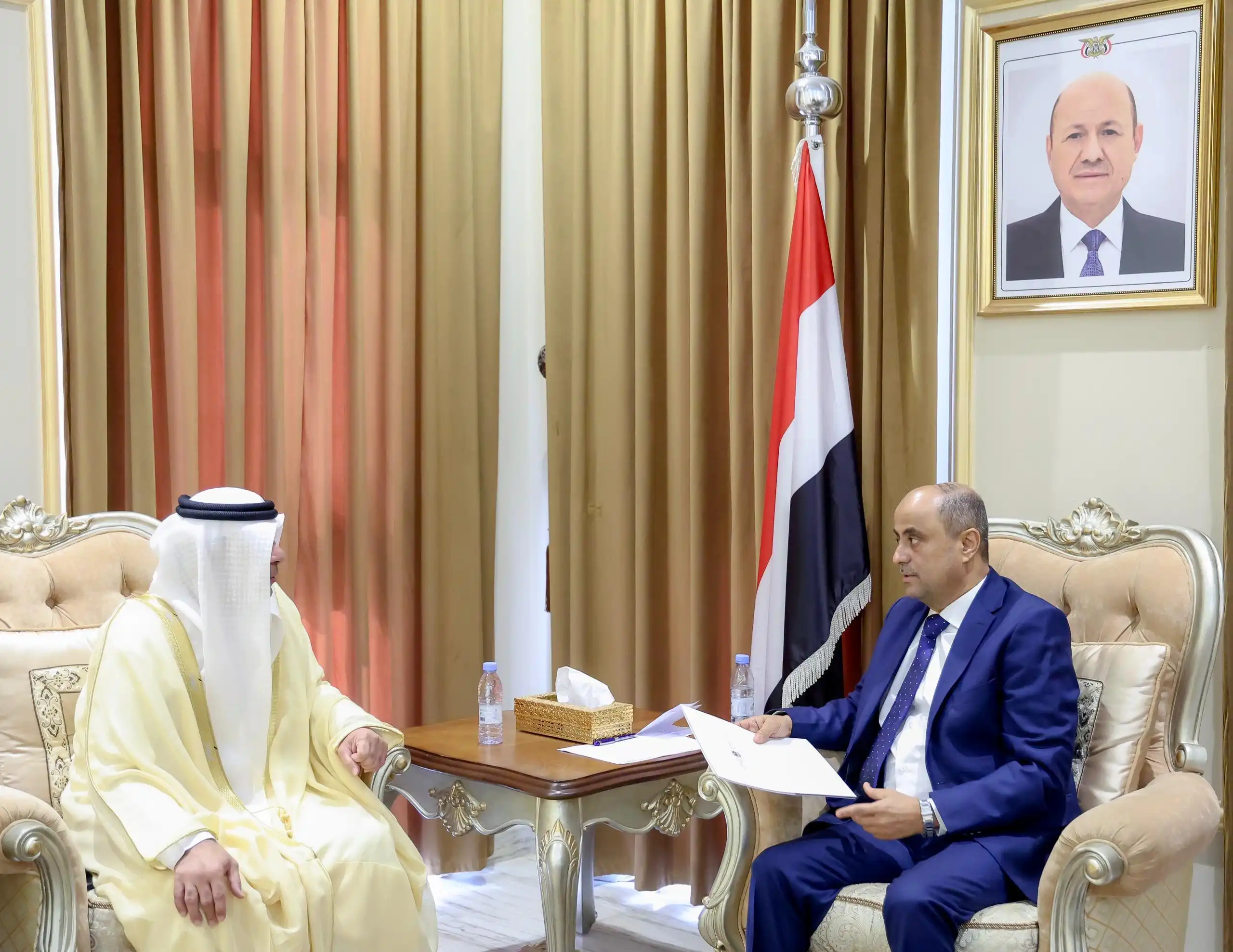 تسلم رئيس مجلس الوزراء، سالم صالح بن بريك، رسالة خطية من أخيه صاحب السمو الشيخ محمد بن راشد آل مكتوم، نائب رئيس دولة الامارات العربية المتحدة، رئيس مجلس الوزراء حاكم دبي، تتعلق بالعلاقات الثنائية بين البلدين الشقيقين وآفاق تعزيزها وتطويرها.