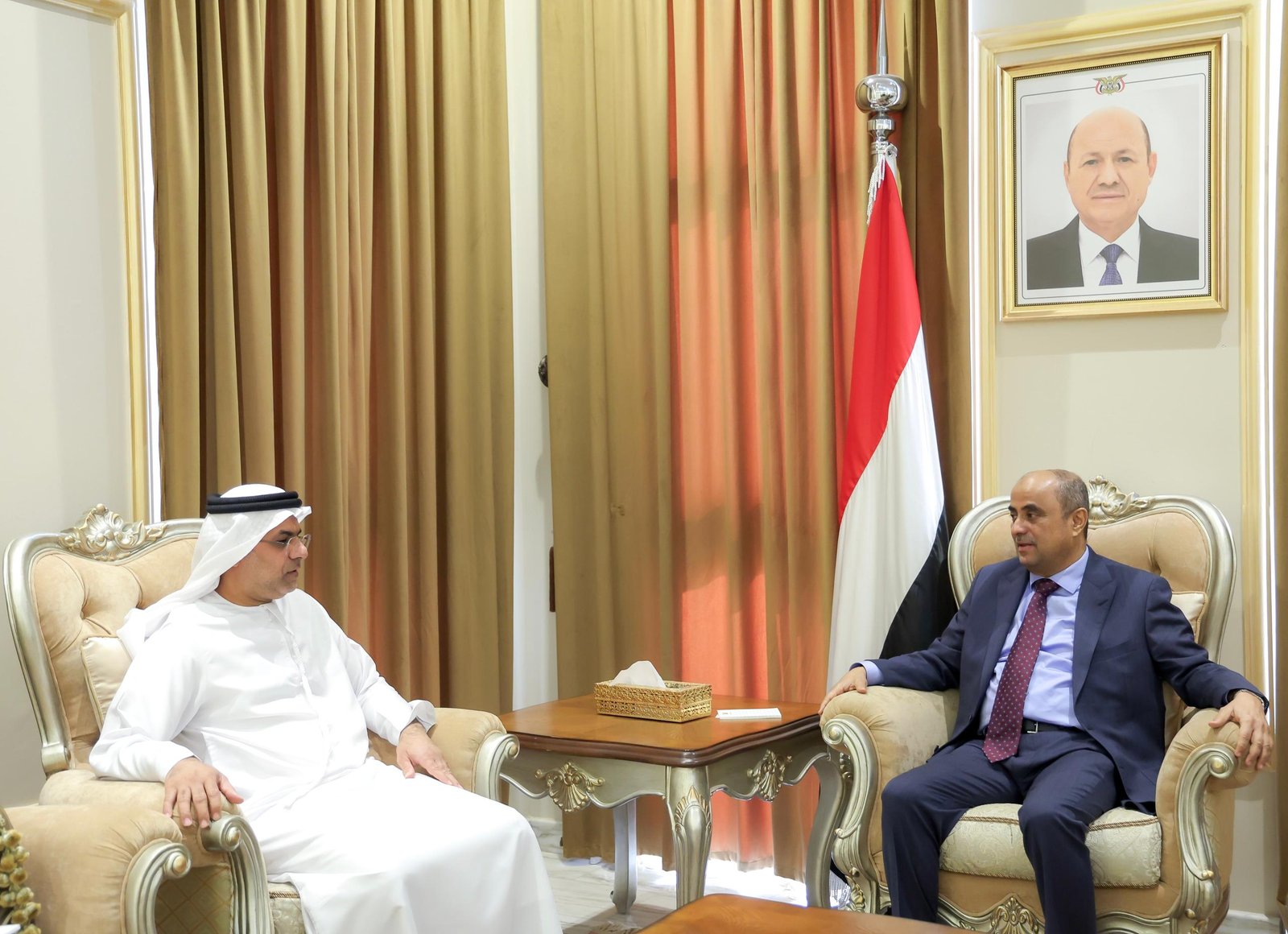 أشاد رئيس مجلس الوزراء سالم صالح بن بريك، بمستوى العلاقات الأخوية المتميزة مع دولة الامارات العربية المتحدة، وما تقدمه من دعم للحكومة اليمنية، وتدخلاتها الانمائية والانسانية السخية للتخفيف من معاناة الشعب اليمني وتحقيق تطلعاته في استعادة مؤسسات الدولة، والاستقرار، والتنمية والسلام..مؤكدا ان الدعم الاقتصادي والسياسي المقدم من الاشقاء في الامارات أساسي في تماسك مؤسسات الدولة والحكومة الشرعية.
