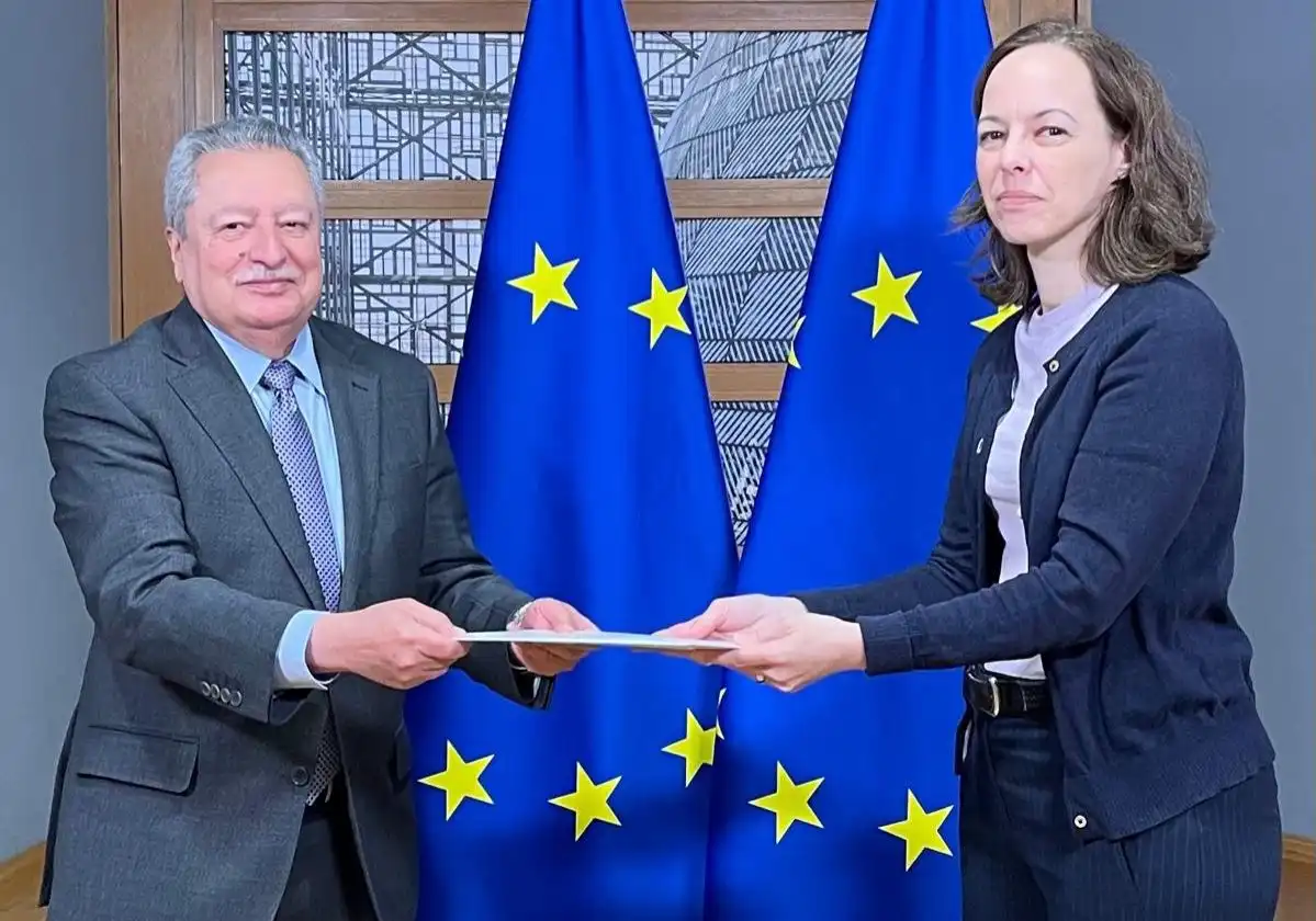 سلم رئيس بعثة اليمن لدى الإتحاد الأوروبي، السفير محمد طه مصطفى، اليوم، مستشارة رئيس المجلس الأوروبي للشؤون الخارجية، ماري جين دوسانتوس، رسالة خطية من فخامة الرئيس الدكتور رشاد محمد العليمي، رئيس مجلس القيادة الرئاسي، موجهة لفخامة الرئيس، أنطونيو كوستا، رئيس مجلس الإتحاد الأوروبي تتعلق بالعلاقات الثنائية والسبل الكفيلة بتعزيزها وتطويرها.