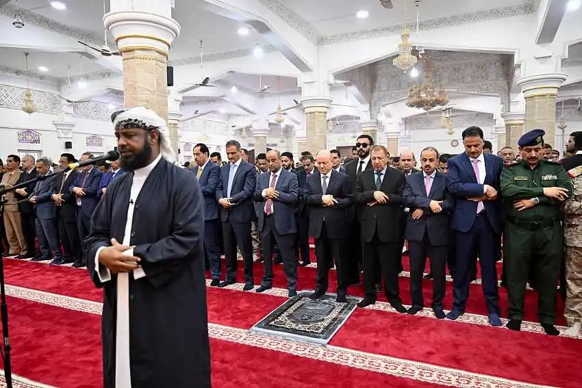 رئيس مجلس القيادة يؤدي في عدن مع جموع المصلين صلاة عيد الأضحى المبارك