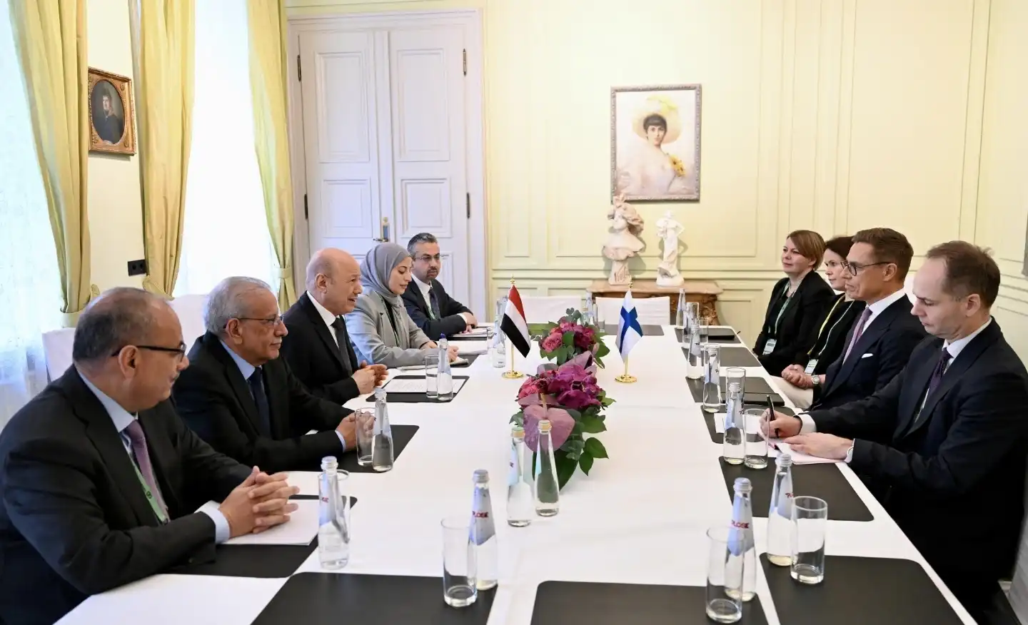 ونوه فخامة الرئيس بالنموذج الفنلندي للدولة الذي يجمع بين الاستقرار الداخلي، والحوكمة الرشيدة، والتعليم المتقدم، وبناء السلام، معربا عن تطلع اليمن للاستفادة من خبرات فنلندا في إصلاح القطاع العام، واللامركزية، والتعليم كمدخل لإعادة بناء الهوية الوطنية.