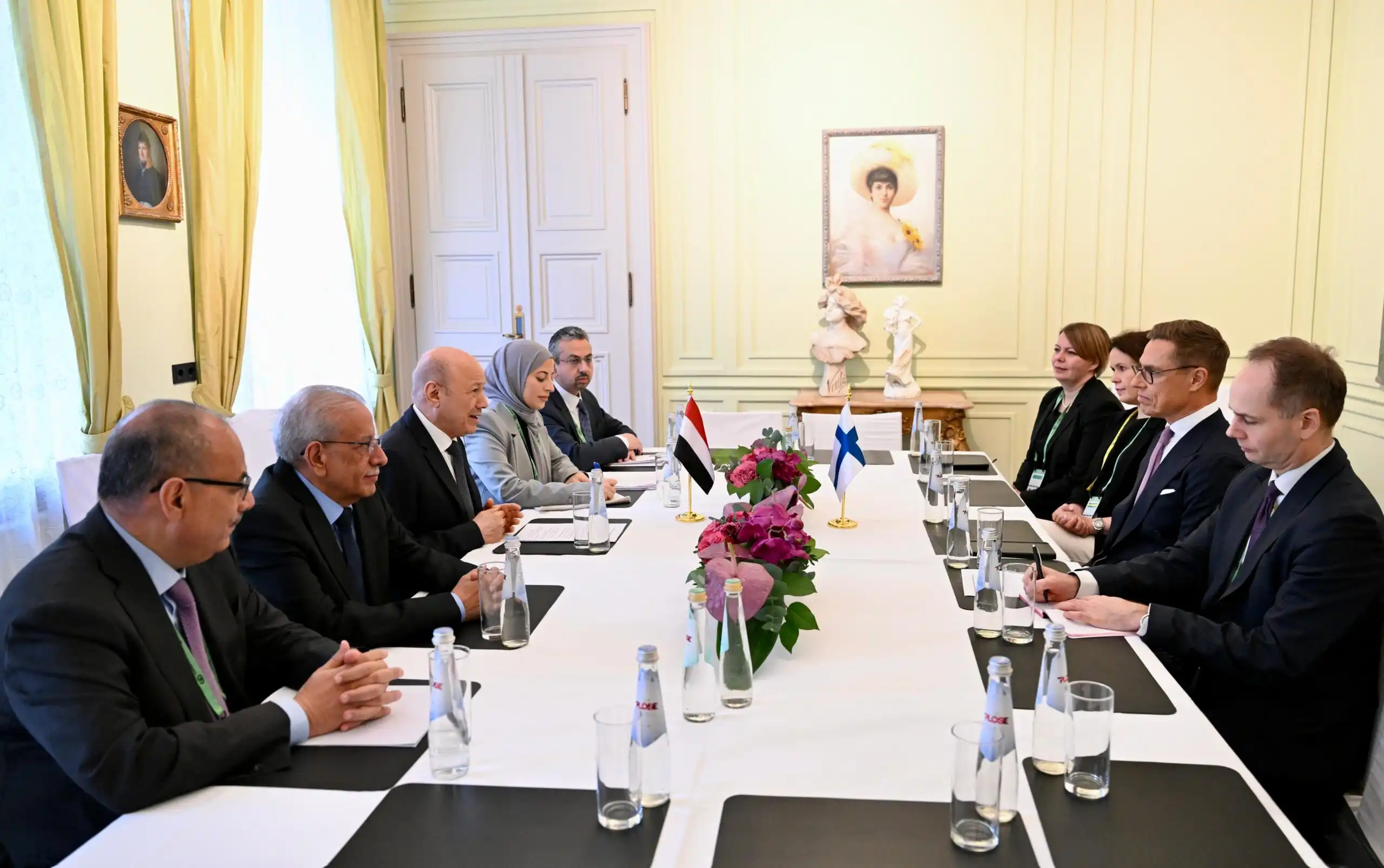 كما أثني فخامة الرئيس على استضافة فنلندا للعديد من اللقاءات والمشاورات بين الأطراف اليمنية، ودورها التقليدي الراسخ في الوساطة الدولية وحل النزاعات.
