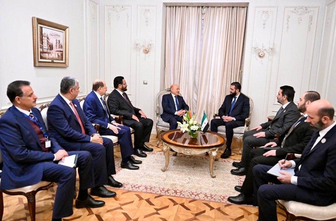 التقى فخامة الرئيس الدكتور رشاد محمد العليمي، رئيس مجلس القيادة الرئاسي، ومعه عضو المجلس سلطان العرادة، اليوم الثلاثاء، فخامة الرئيس احمد الشرع، رئيس الجمهورية العربية السورية الشقيقة، وذلك على هامش اعمال مؤتمر القمة العربية غير العادية التي تستضيفها العاصمة المصرية القاهرة.