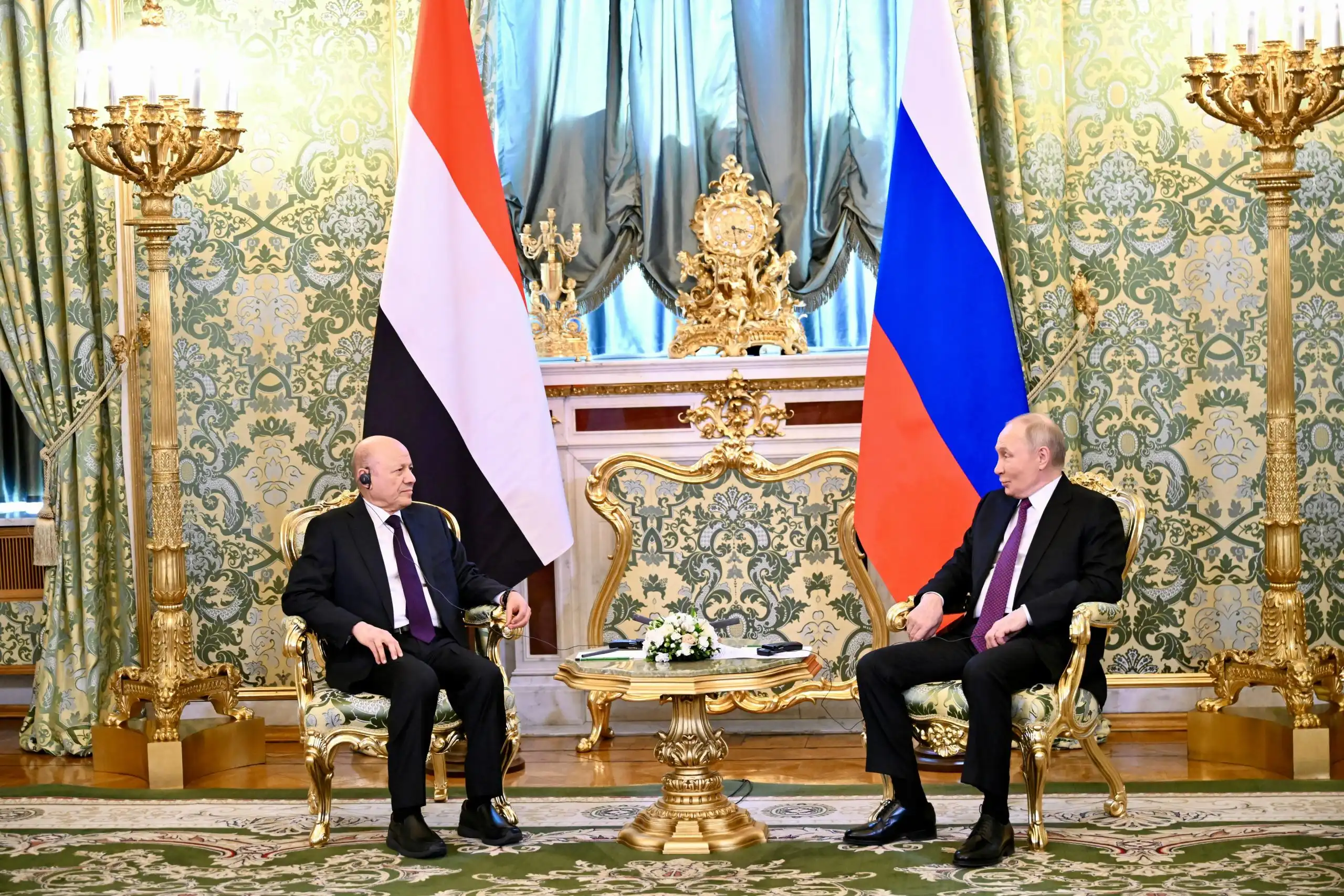 وفي اللقاء، رحب الرئيس الروسي برئيس مجلس القيادة الرئاسي، والوفد المرافق له، مجددا تأكيد التزام روسيا الاتحادية بدعم اليمن وشعبه، وتطلعاته في الامن والاستقرار والسلام بما يجسد العلاقات التاريخية المتينة بين البلدين، التي تعتمد على تقاليد راسخة من الصداقة، والاحترام المتبادل.