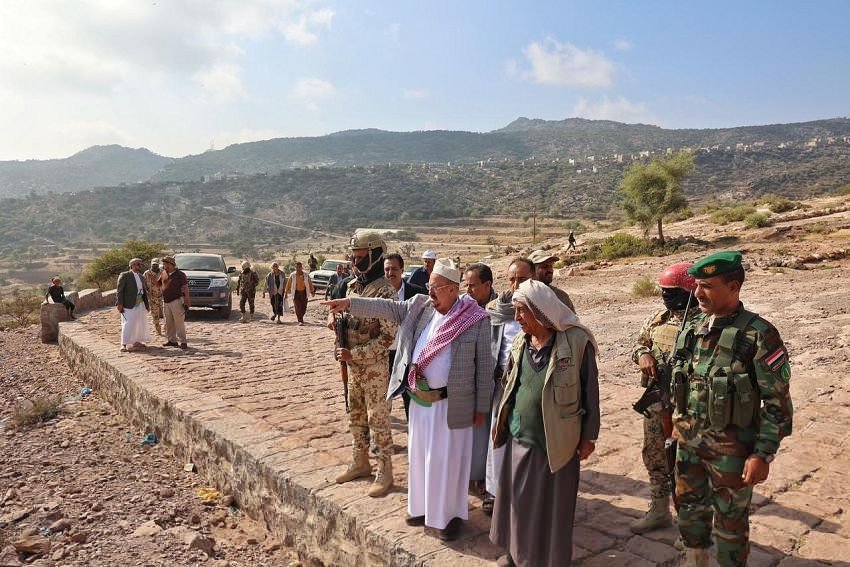 رئيس مجلس النواب يتفقد مشروع الطريق الرابط بين الحجرية وقرى السواء في تعز