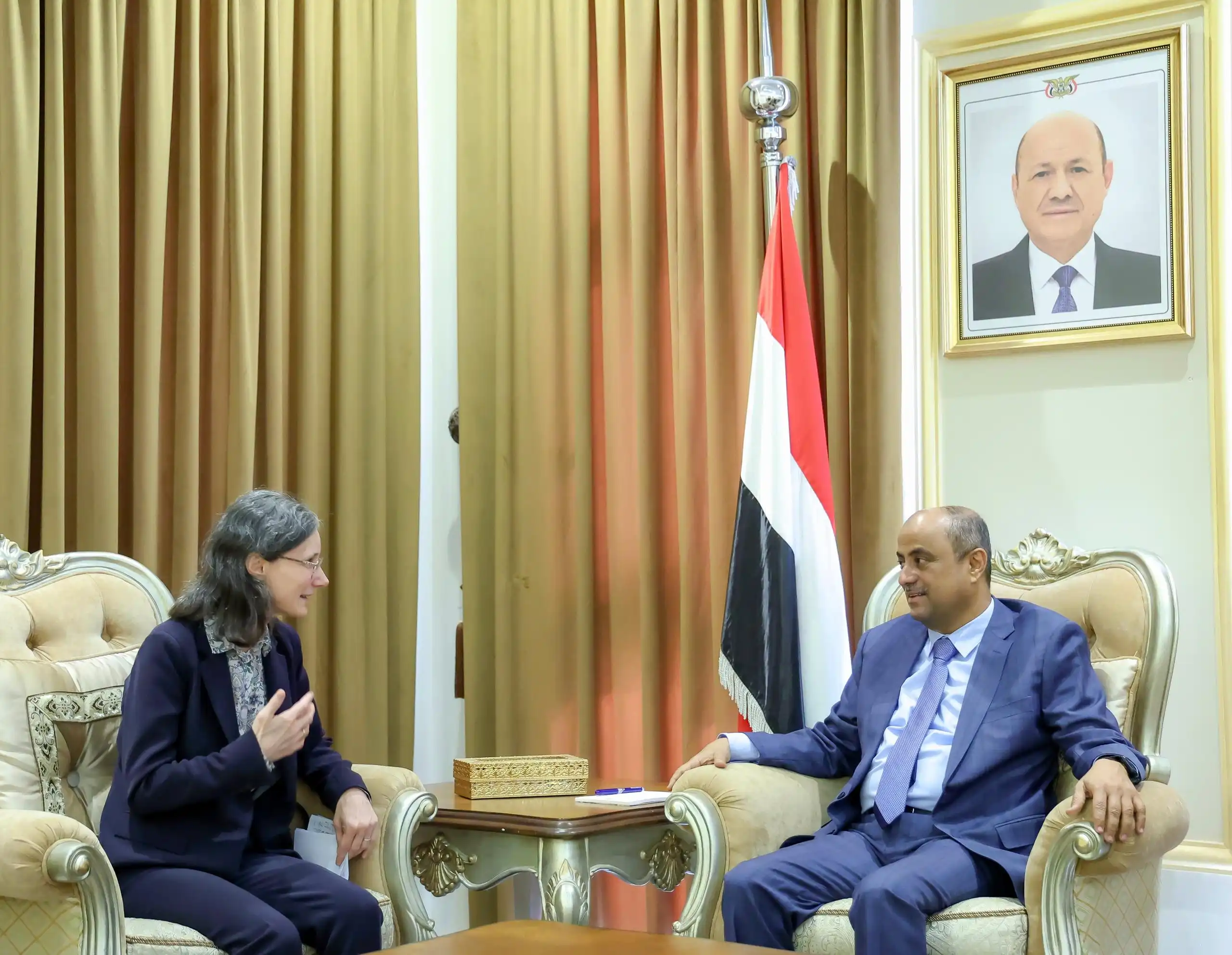 بدورها، أكدت السفيرة الفرنسية، دعم بلادها الكامل لرئيس الوزراء والحرص على إسناد جهوده لتنفيذ الأولويات العاجلة في الجوانب الاقتصادية والخدمية.. مجددة موقف فرنسا الداعم للحكومة اليمنية على المستوى الثنائي وفي إطار الدول الخمس دائمة العضوية في مجلس الامن والمحافل الأممية والدولية.
