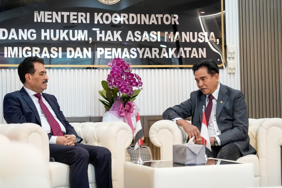 بحث سفير اليمن لدى إندونيسيا، سالم بلفقيه، اليوم، مع وزير التنسيق للشؤون القانونية وحقوق الإنسان والهجرة والإصلاح، الدكتور يوسريل إهزا ماهيندرا، سبل تعزيز وتطوير العلاقات الثنائية في المجالات ذات الاهتمام المشترك.