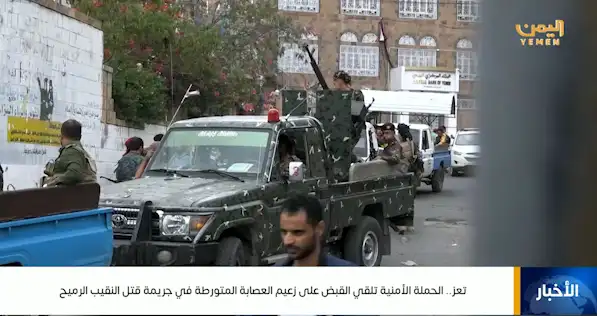 تمكنت الحملة الأمنية المشتركة في شرطة مديرية الشمايتين، اليوم الخميس، من ضبط عصابة مسلحة متورطة في جريمة قتل النقيب محمد الرميح، أحد ضباط أمن المديرية، وذلك في مدينة التربة جنوب محافظة تعز، بقيادة العقيد عبدالله الوهباني.