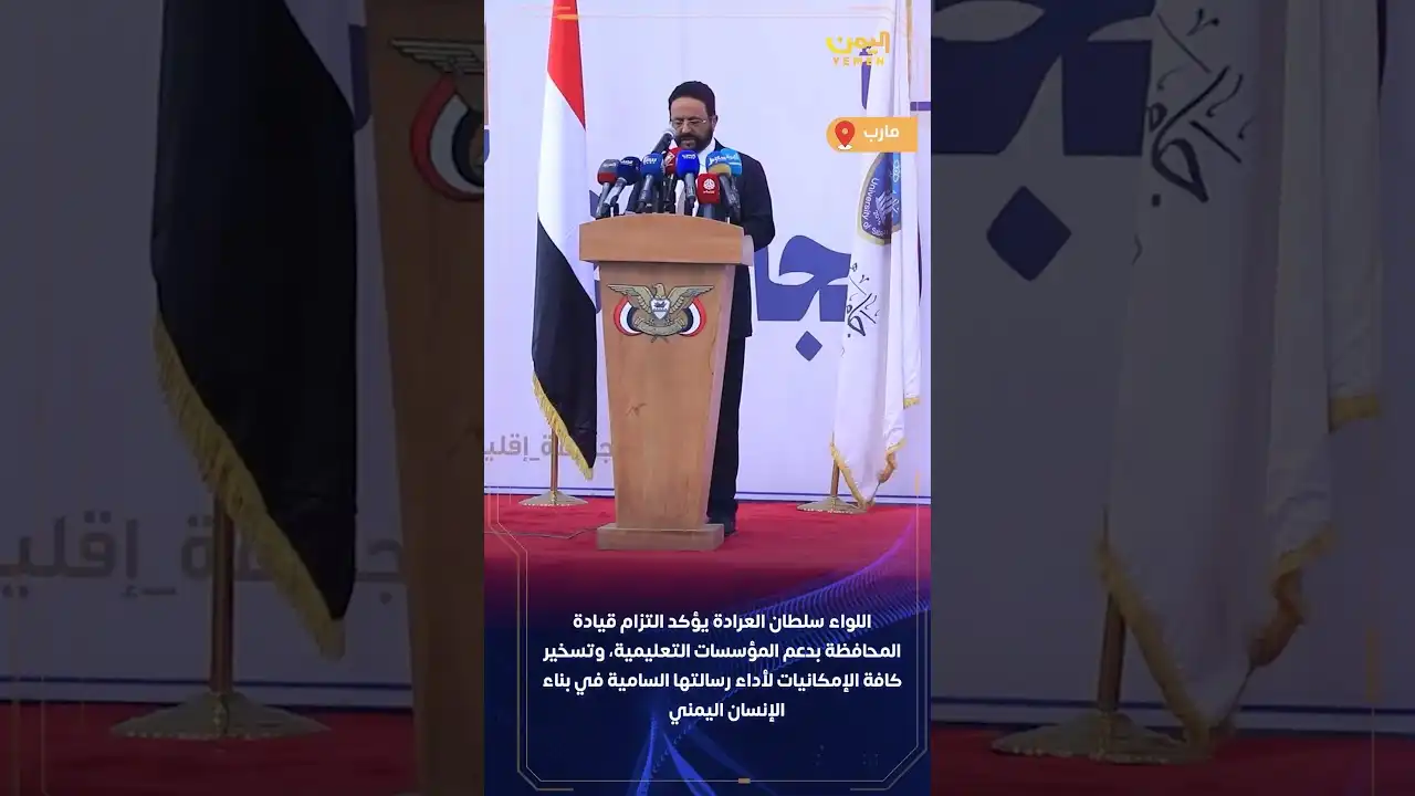 عضو مجلس القيادة الرئاسي اللواء سلطان العرادة يشهد حفل تخرج 1139 طالباً وطالبة من جامعة إقليم سبأ