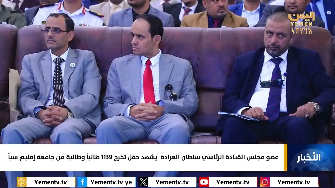 عضو مجلس القيادة الرئاسي سلطان العرادة يشهد حفل تخرج 1139 طالباً وطالبة من جامعة إقليم سبأ