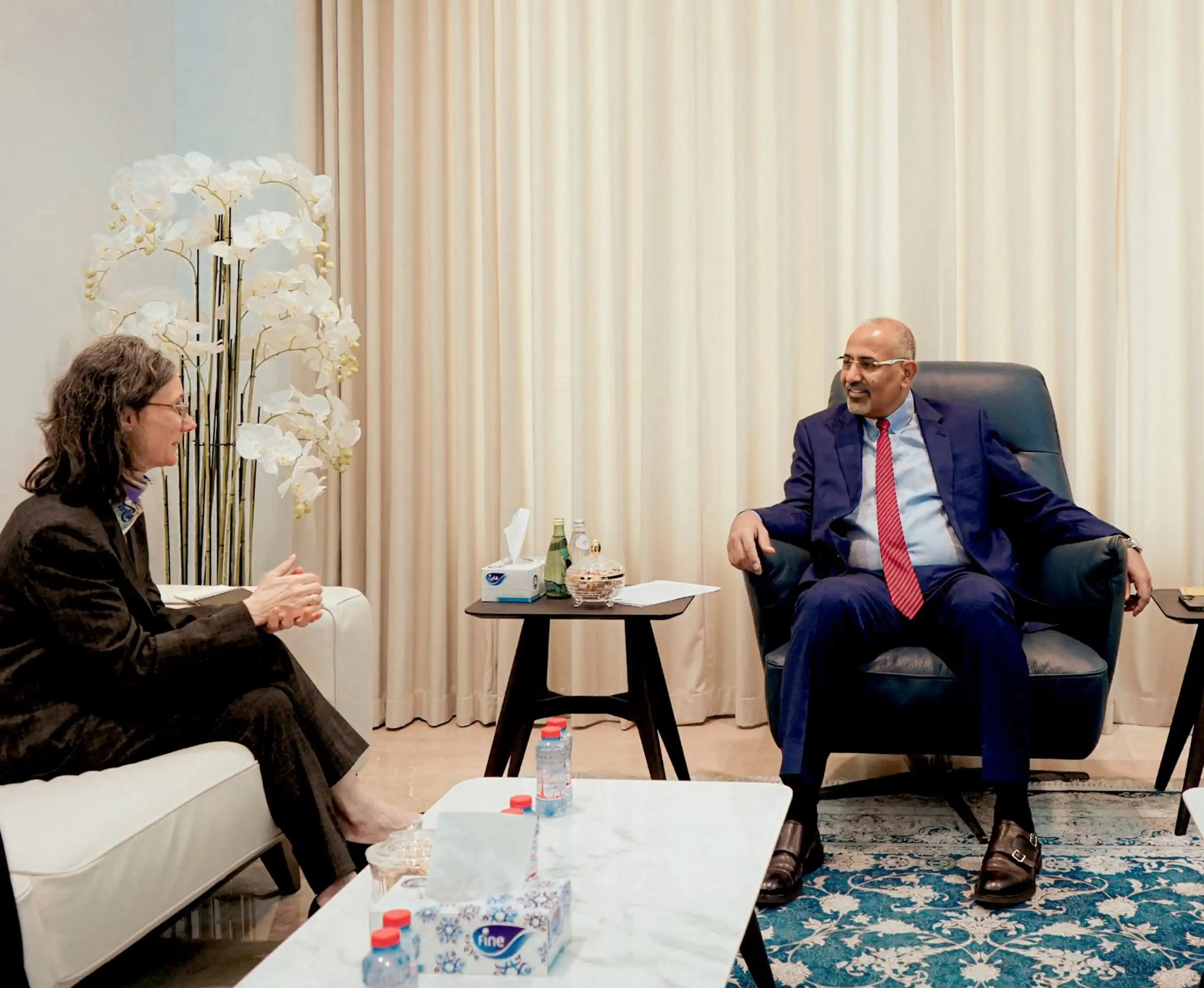 عضو مجلس القيادة اللواء عيدروس الزُبيدي يناقش مع السفيرة الفرنسية مستجدات الوضع الإنساني