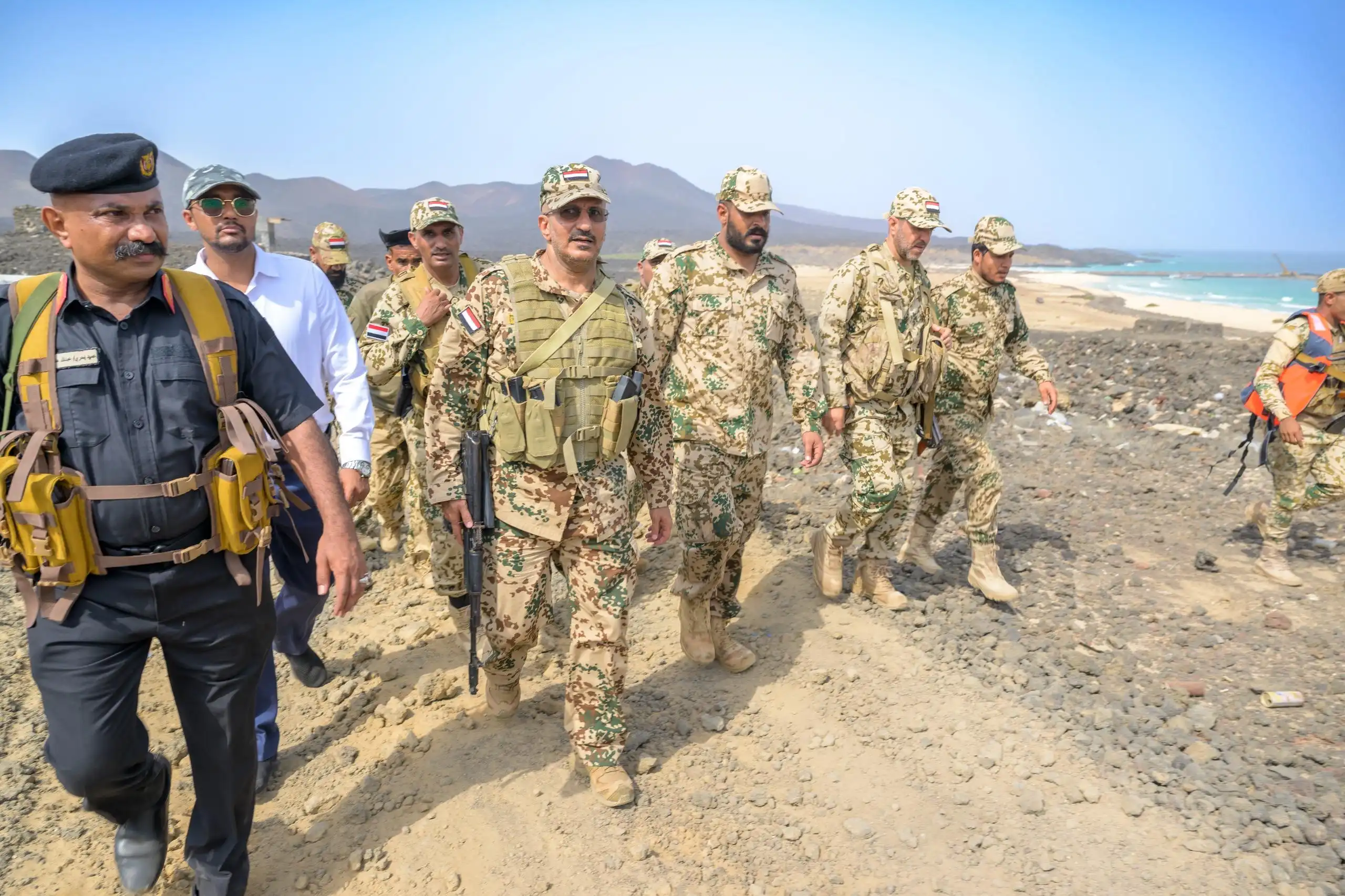 رافقه خلال الزيارة عضو اللجنة العسكرية المشتركة العميد الركن صادق دويد، ووكيل أول محافظة الحديدة وليد القديمي، وقائد اللواء الأول مشاة بحري العميد الركن بهيجي الرمادي، وقائد اللواء الثاني مشاة بحري العميد الركن عبدالله فخري، وقائد اللواء الثاني تهامة العميد فؤاد جهنم، وأركان حرب اللواء الرابع تهامة العقيد أحمد غانم.