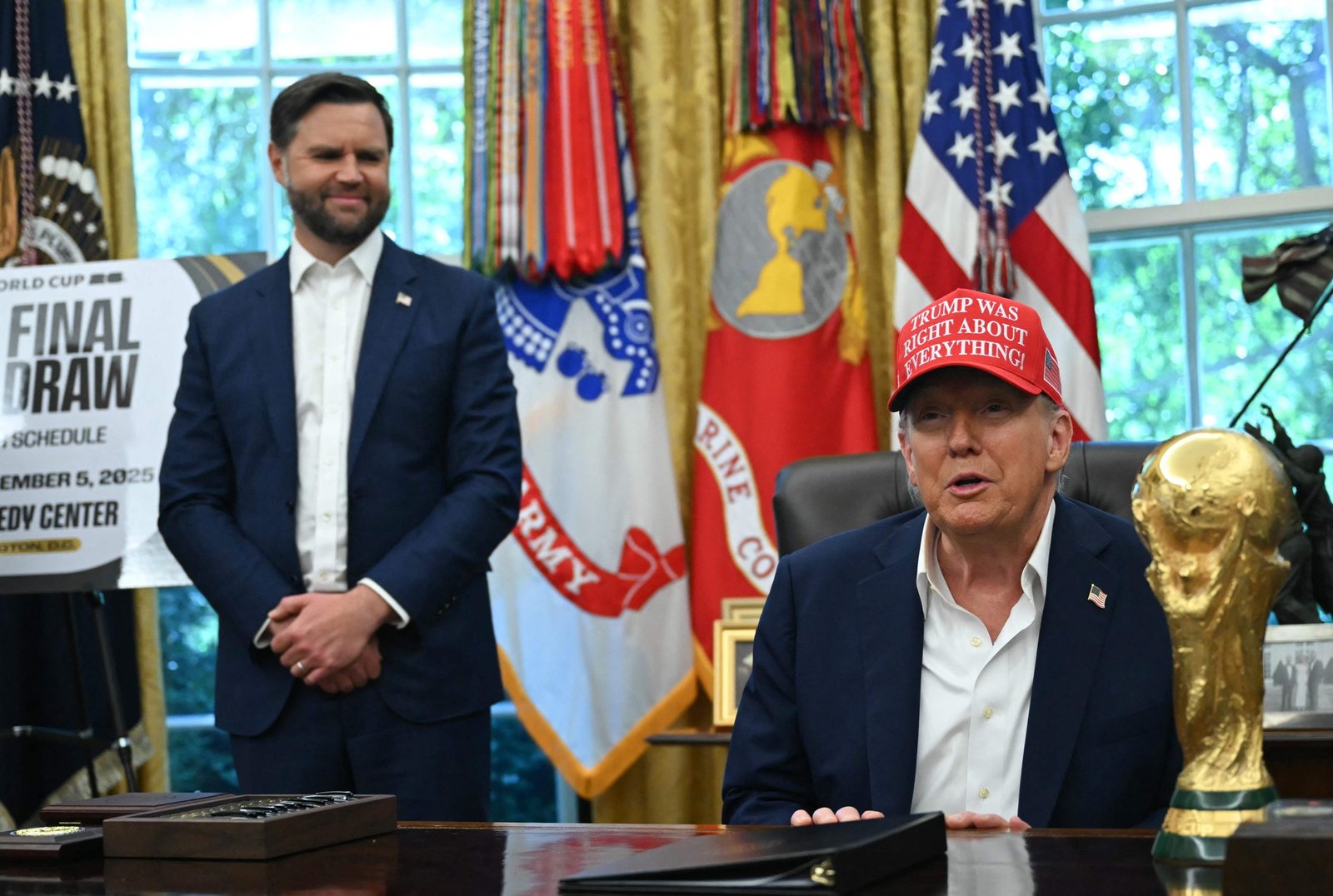 أعلن الرئيس الأميركي دونالد ترامب أن مراسم سحب قرعة نهائيات كأس العالم لكرة القدم 2026 ستقام في الخامس من ديسمبر المقبل في مركز كينيدي الثقافي بالعاصمة واشنطن، وذلك خلال ظهوره في المكتب البيضاوي إلى جانب رئيس الاتحاد الدولي لكرة القدم (فيفا) جاني إنفانتينو، حيث حمل كأس البطولة واضعًا قبعة حمراء كتب عليها: “ترامب كان محقًا في كل شيء”، واصفًا الحدث بأنه “من المحتمل أن يكون أكبر حدث رياضي”.