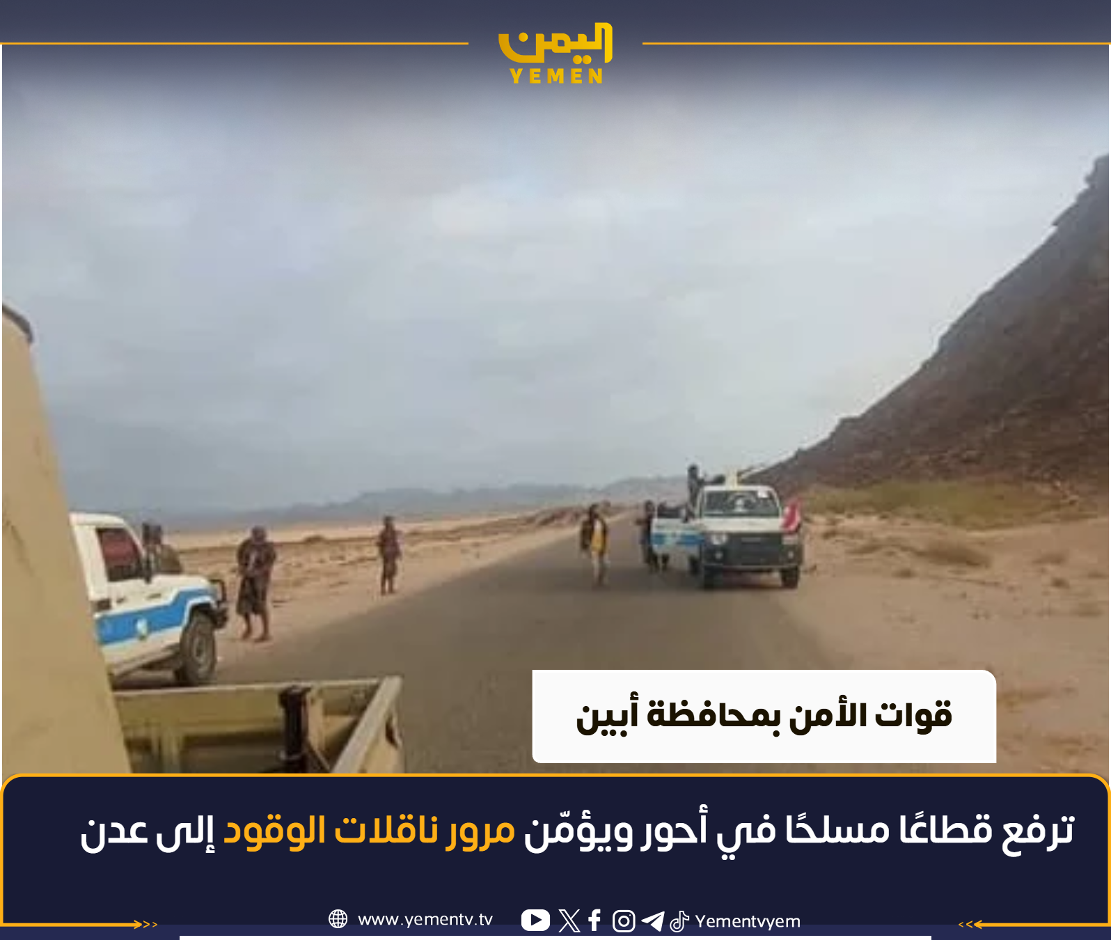 قوات الأمن بمحافظة أبين ترفع قطاعًا مسلحًا في أحور ويؤمّن مرور ناقلات الوقود إلى عدن