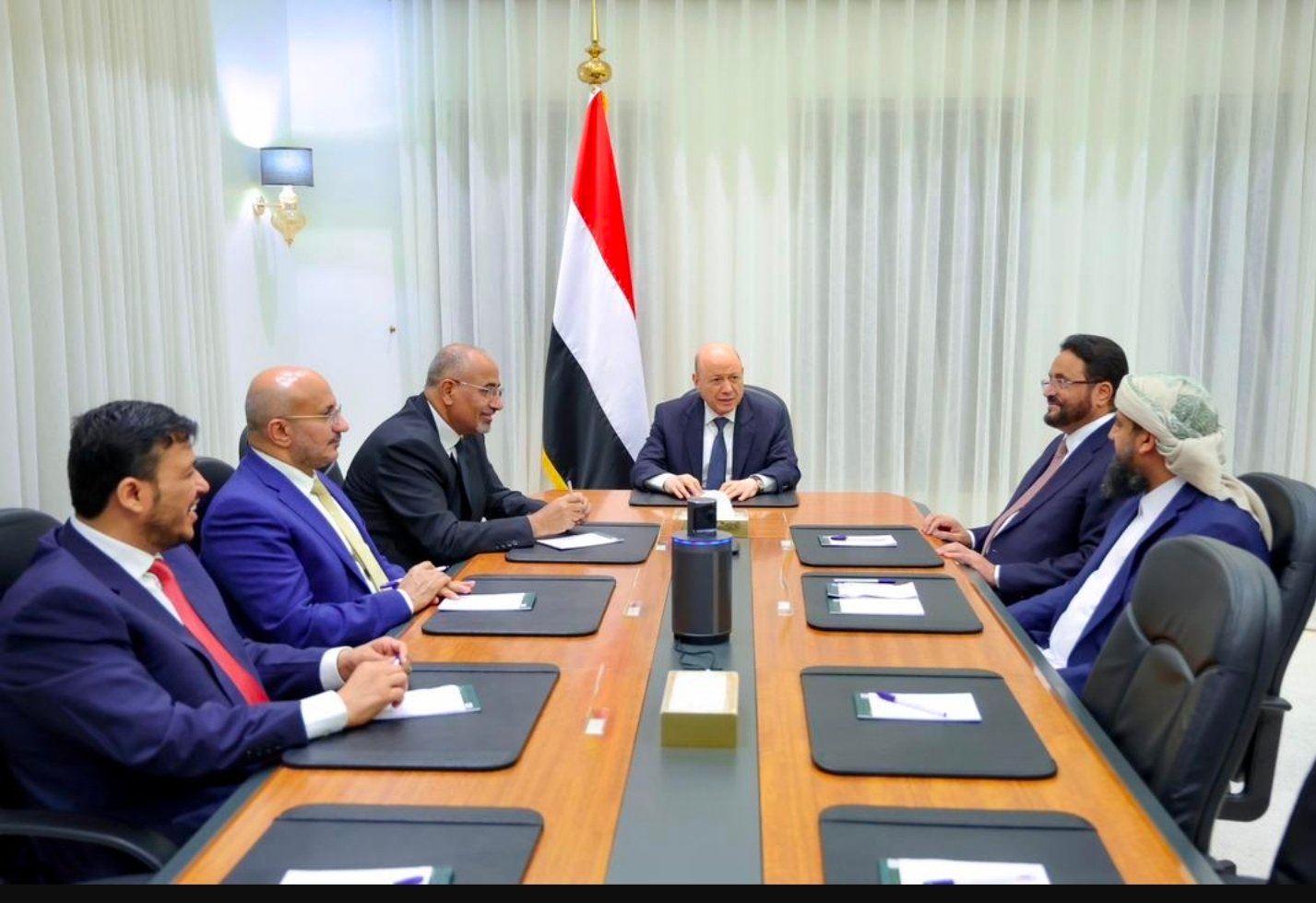 عقد مجلس القيادة الرئاسي، اليوم الجمعة، اجتماعا استثنائيا برئاسة فخامة الرئيس الدكتور رشاد محمد العليمي، رئيس المجلس، وبحضور أعضائه عيدروس الزبيدي، سلطان العرادة، طارق صالح، عبدالرحمن المحرمي، و الدكتور عبدالله العليمي، وعبر الاتصال المرئي عضوا المجلس عثمان مجلي، وفرج البحسني.