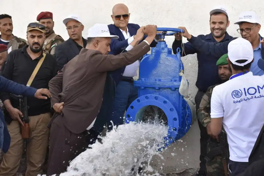 وعقب عملية تشغيل مشروع المياه بحضور رئيس بعثة منظمة الهجرة الدولية في اليمن، عبد الستار عيسويف، استمع المحافظ شمسان من مدير المشاريع بمنظمة الهجرة الدولية عبد المجيدي الكلدي، الى شرح حول أقسام المشروع المكون من بئر صناعي مع وحدة ضخ غاطسة ومنظومة الطاقة الشمسية المكونة من (272) لوح شمسي بقدرة 180 ك ف، ونظام مراقبة عن بعد ووحدة كلورة اتوماتيكية وتركيب (2000) عداد مائي وتدريب 40 متدرباً ومتدربة لتشغيل وصيانة المشروع الذي يضخ (1000) متر مكعب الى خزانات مؤسسة المياه ويستفيد من المشروع (60) الف مواطن .