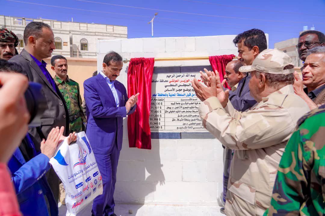 وضع محافظ شبوة، عوض ابن الوزير، اليوم، حجر الأساس لعدد من المشاريع في عدة قطاعات حيوية في المحافظة بتكلفة إجمالية بلغت مليونين وخمسمائة ألف دولار بتمويل محلي.