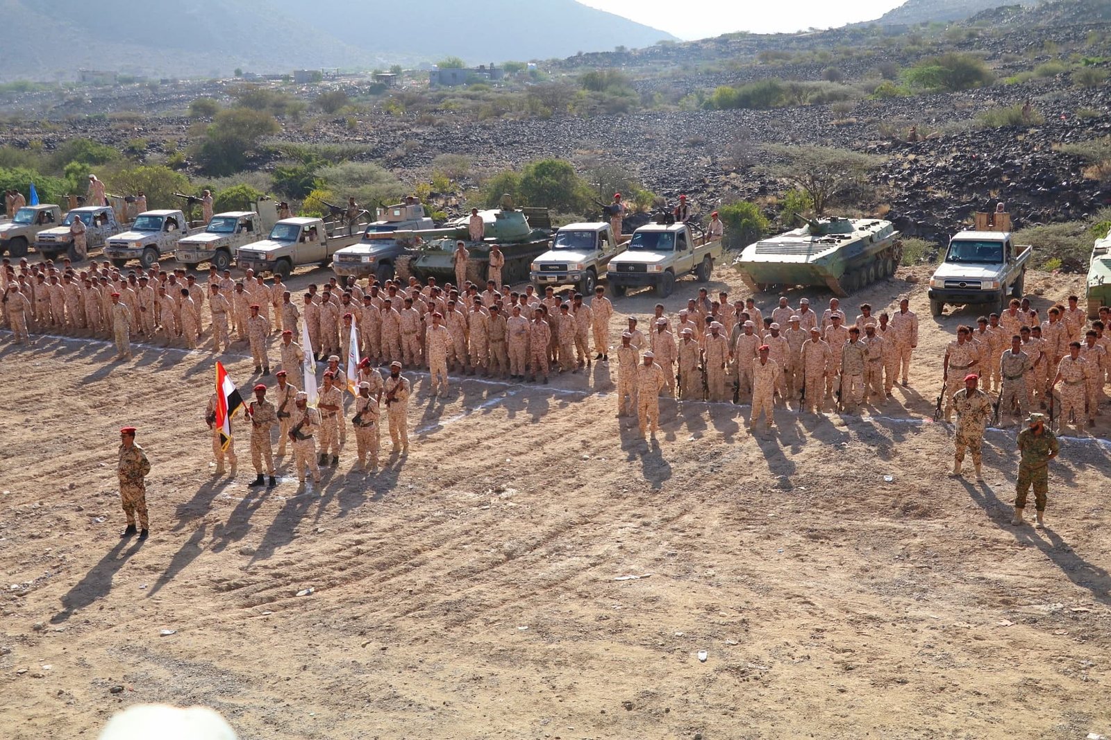 دشن محور أبين، اليوم السبت، العام التدريبي والعملياتي والقتالي لعام 2025م، بعرض عسكري رمزي عكس مدى الانضباط والجاهزية العالية لدى المقاتلين في المحور.