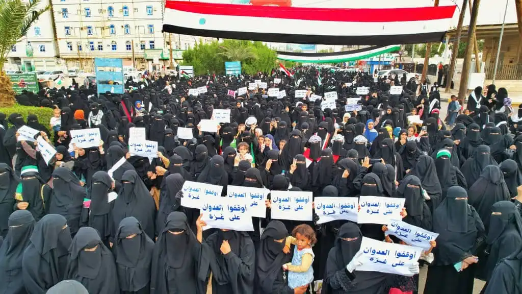 مسيرة نسوية غاضبة في مأرب تندد بسياسة التجويع الإسرائيلية في غزة