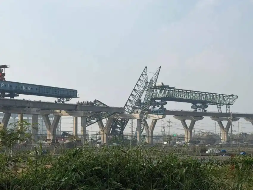 وكانت الرافعة في الحادث السابق تعمل ضمن مشروع إنشاء خط سكة حديد فائق السرعة، قبل أن تنهار وتصطدم بالقطار، مما تسبب في خروجه عن مساره واندلاع النيران فيه لفترة وجيزة.