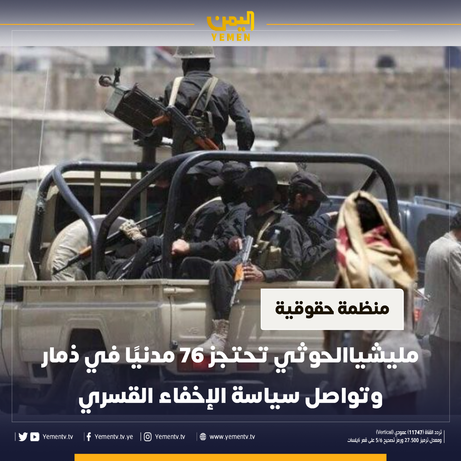 منظمة حقوقية: مليشيا الحوثي تحتجز 76 مدنيًا في ذمار