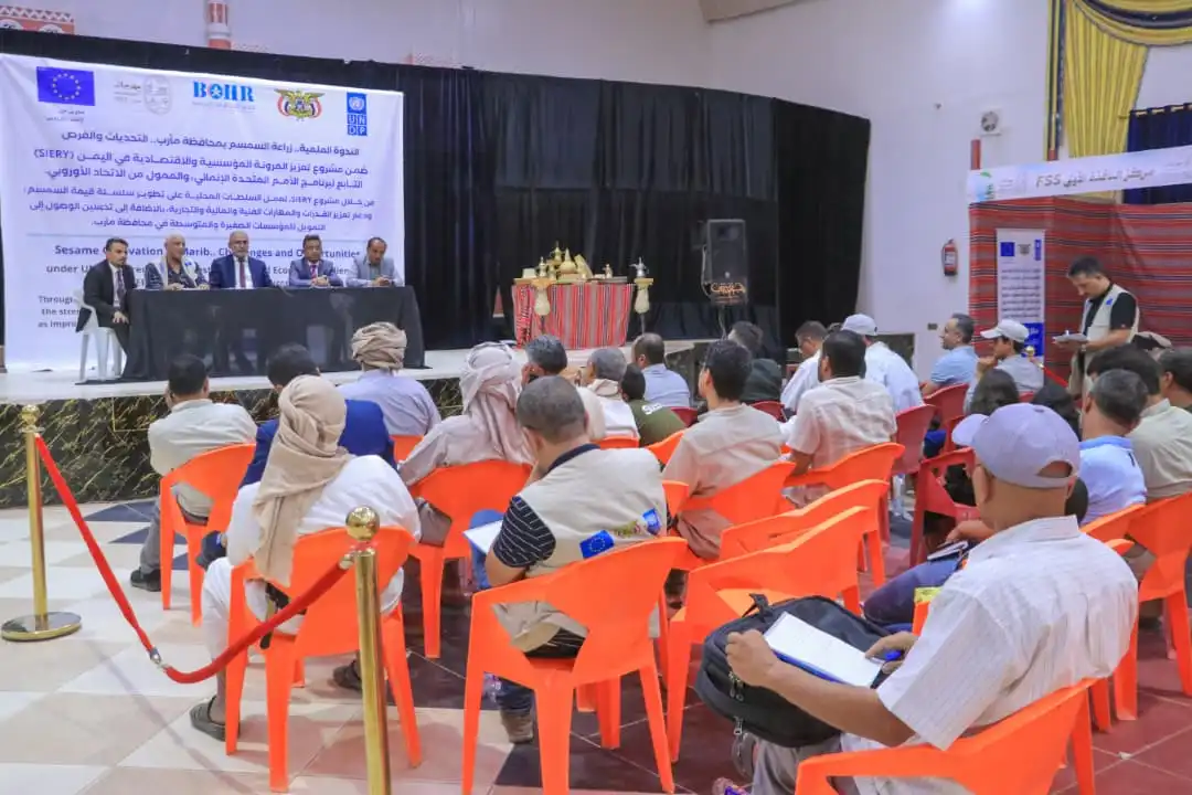 شهدت محافظة مأرب انعقاد ندوة علمية متخصصة بعنوان “زراعة السمسم بمحافظة مأرب.. التحديات والفرص”، ضمن فعاليات مهرجان السمسم الذي ينظمه ائتلاف الخير للإغاثة الإنسانية على مدى ثلاثة أيام، في إطار مشروع “سيري” لتعزيز المرونة المؤسسية والاقتصادية في اليمن.