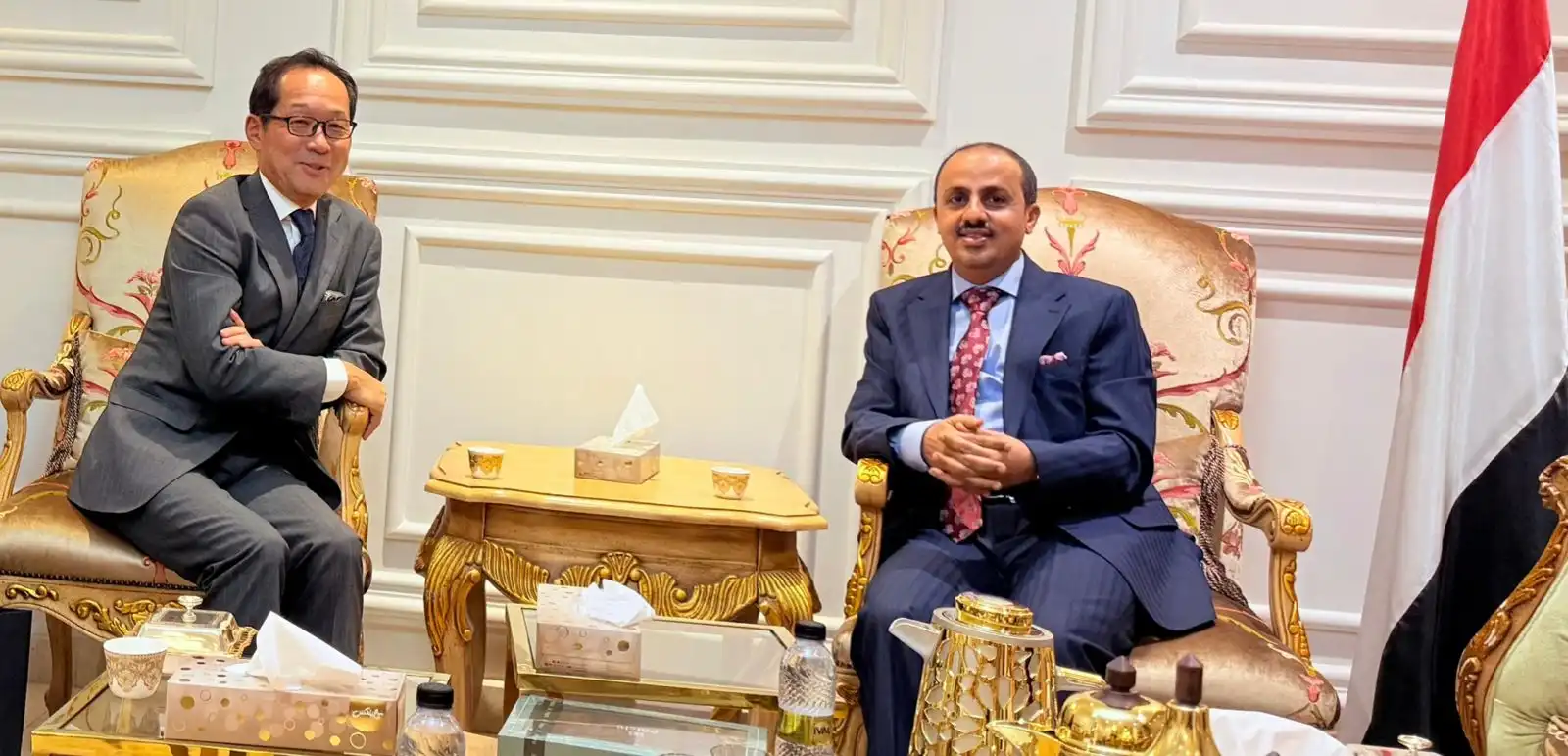 بحث وزير الإعلام والثقافة والسياحة، معمر الإرياني، اليوم، مع السفير الياباني لدى اليمن، يويتشي ناكاشيما، العلاقات الثنائية بين البلدين الصديقين وسبل تعزيز التعاون في المجالات المختلفة وتنميتها.