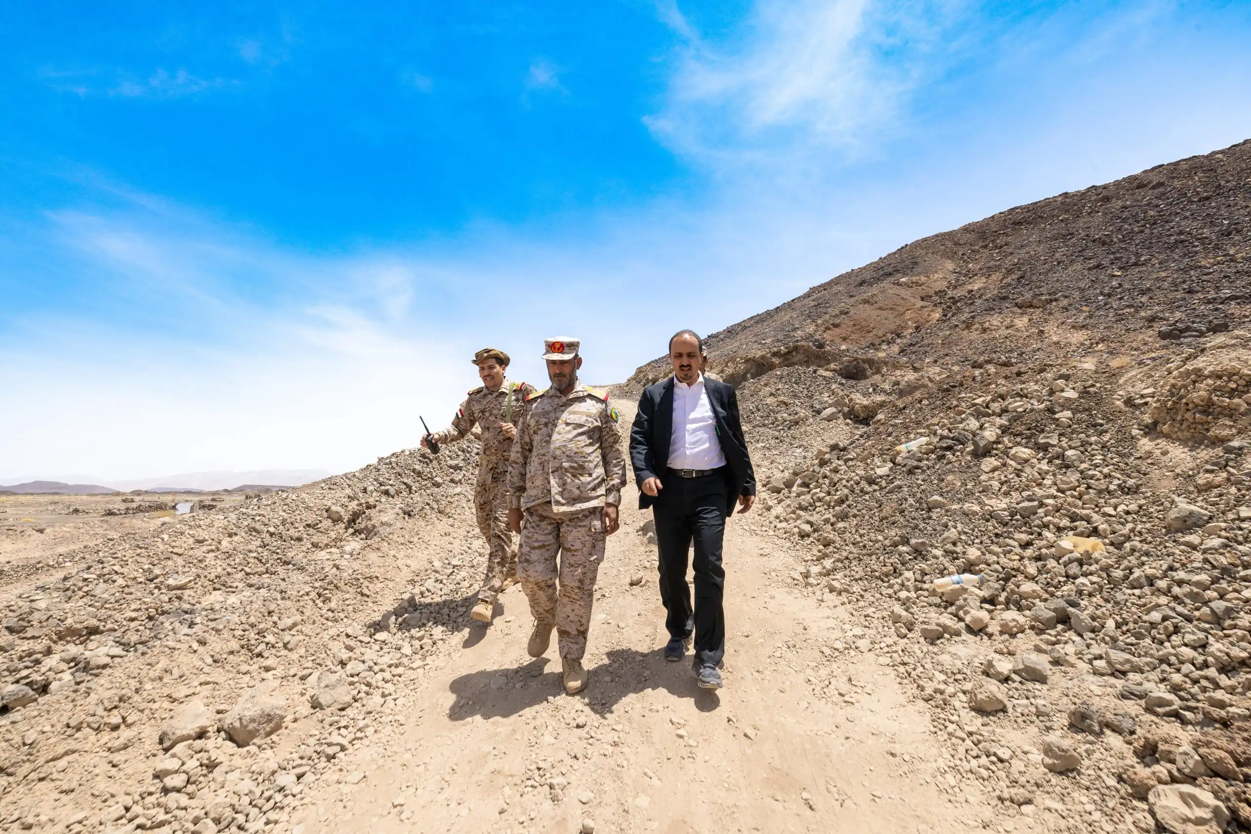 قام وزير الإعلام والثقافة والسياحة، معمر الإرياني، ورئيس هيئة الأركان العامة، الفريق الركن صغير بن عزيز، اليوم، بزيارة تفقدية لأبطال الجيش الوطني والمقاومة الشعبية في جبهات القتال بالمنطقة العسكرية السابعة بمحافظة مأرب.
