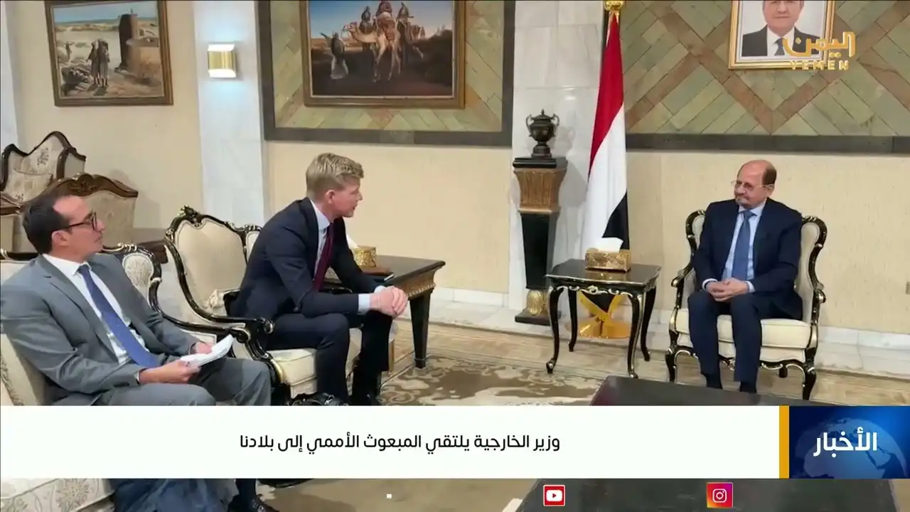 الرئيسية/البث المباشر/وزير الخارجية الدكتور شائع الزنداني يلتقي المبعوث الأممي إلى بلادنا وزير الخارجية الدكتور شائع الزنداني يلتقي المبعوث الأممي إلى بلادنا11/11/2025آخر تحديث: 11/11/20250 أقل من دقيقة#قناة_اليمن #اليمن القناة الرسمية التابعة للحكومة اليمنية الشرعية المعترف بها دولياًمقالات ذات صلة دعم دولي وعربي واقليمي كامل لرئيس مجلس القيادة وجهود السعودية لدعم الأمن والاستقرار ووحدة اليمن 27/12/2025 تحالف دعم الشرعية: التحركات العسكرية المخالفة لجهود خفض التصعيد في حضرموت سيتم التعامل معها 27/12/2025 نسخ الرابط تم نسخ الرابط 11/11/2025آخر تحديث: 11/11/20250 أقل من دقيقة إتبعنا شاركها فيسبوك X لينكدإن Tumblr بينتيريست Reddit VKontakte واتساب تيلقرام مشاركة عبر البريد طباعة
