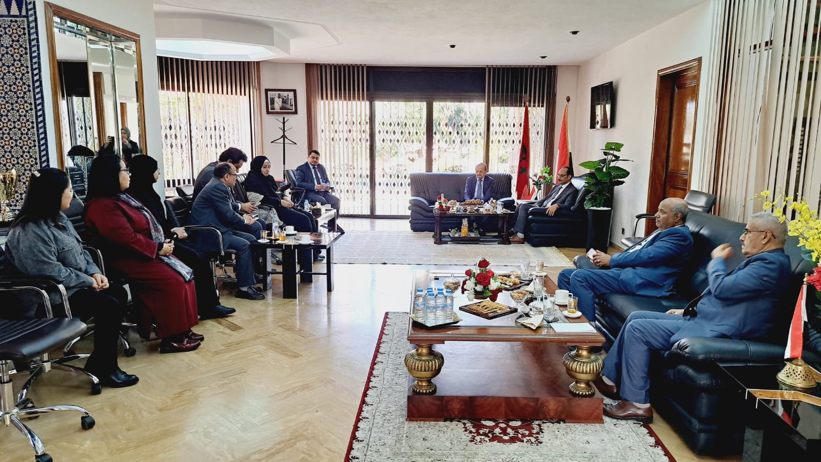 حضر اللقاء، مسؤول ملف الوطن العربي، المستشار محمد عزي بعكر، والسكرتير الخاص لوزير الخارجية، والمستشار سالم باعفي.