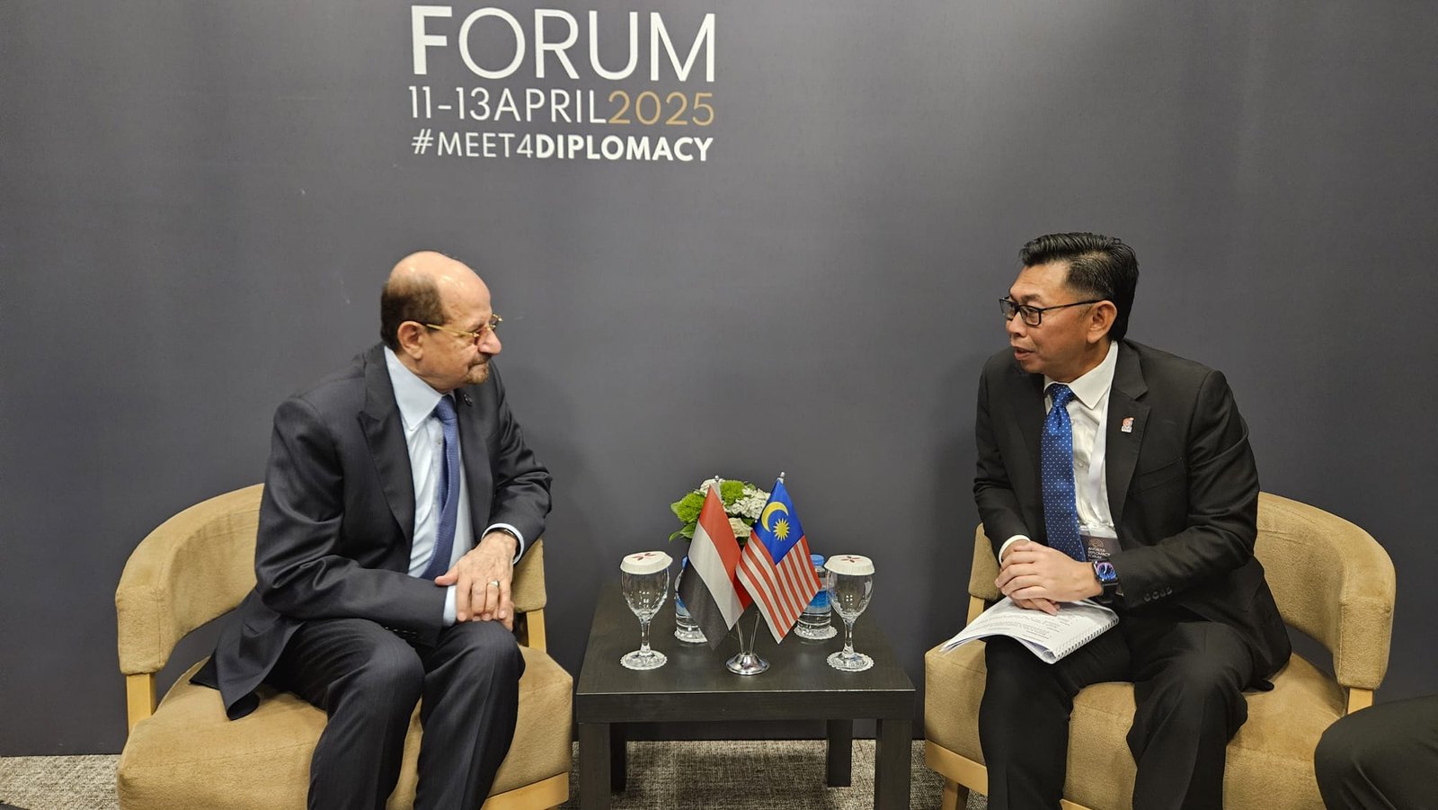 التقى وزير الخارجية وشؤون المغتربين، الدكتور شائع الزنداني، اليوم السبت، نائب وزير الخارجية الماليزي، الدكتور محمد الأمين، على هامش أعمال منتدى أنطاليا الدبلوماسي الرابع. وخلال اللقاء، أشاد الزنداني بالعلاقات التاريخية التي تجمع البلدين والشعبين، مؤكداً أهمية تعزيزها وتطويرها في مختلف المجالات.