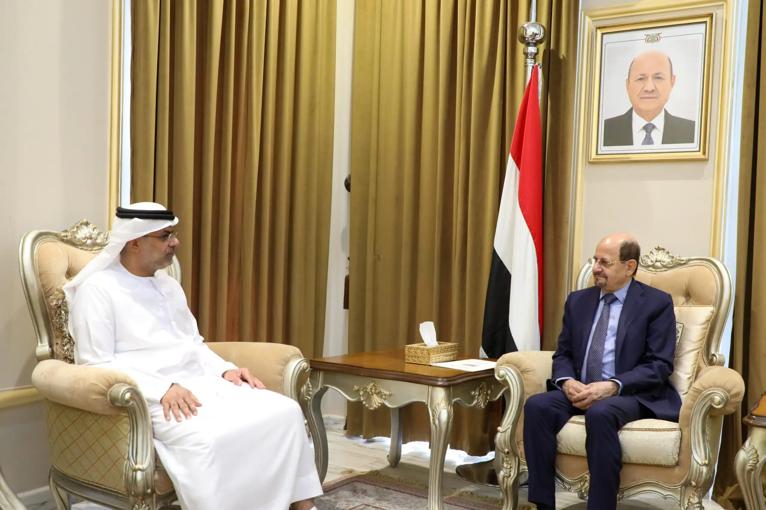 من جانبه، أكد السفير الإماراتي على متانة العلاقات الأخوية التي تجمع البلدين الشقيقين..مجدداً دعم بلاده لمجلس القيادة الرئاسي والحكومة اليمنية ولكل ما يضمن أمن واستقرار اليمن ويحقق تطلعات الشعب اليمني.