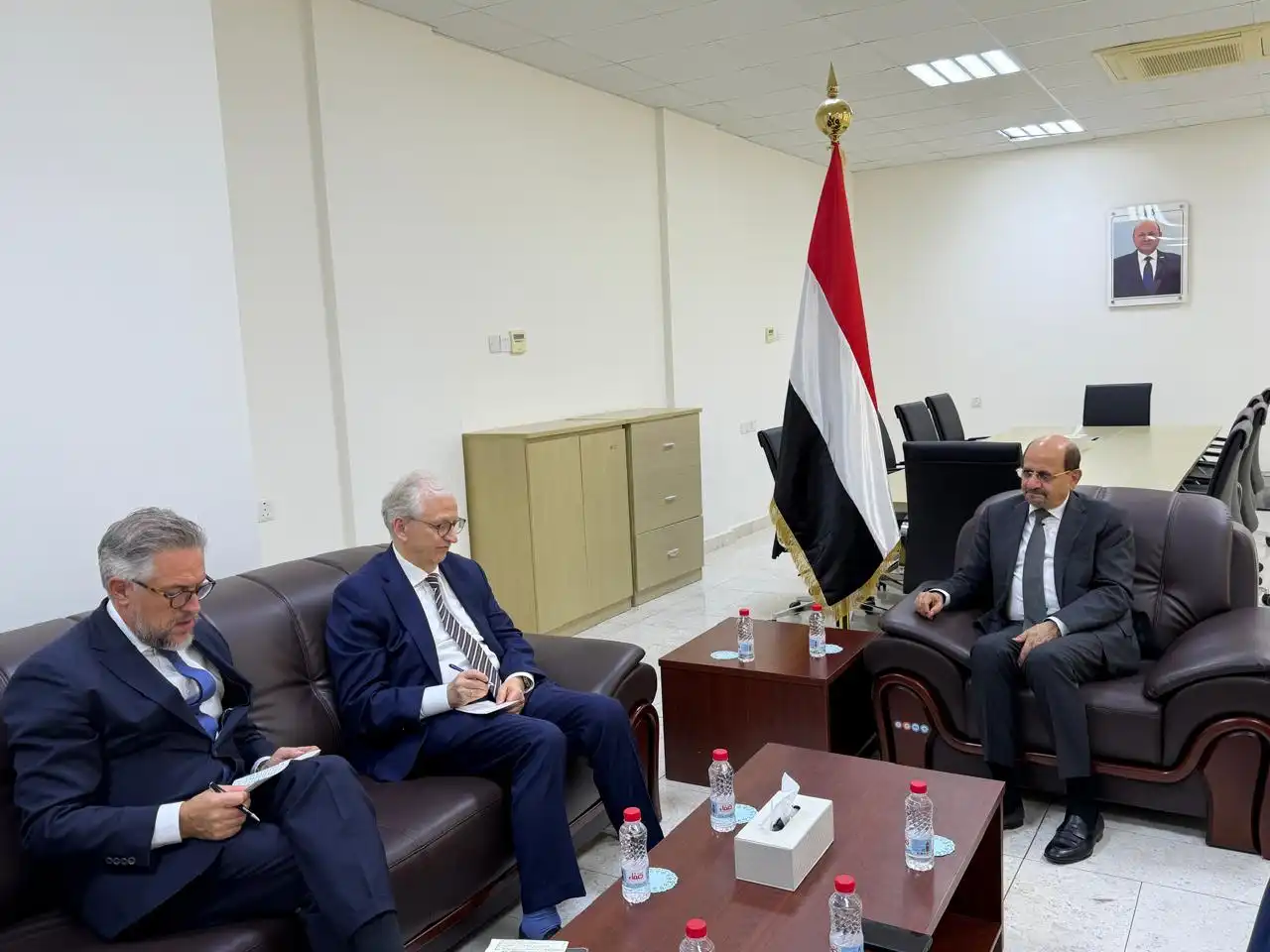 وخلال اللقاء، رحّب الوزير بالسفيرين..مشيداً بدور ألمانيا والاتحاد الأوروبي في دعم جهود إحلال السلام وتعزيز مسار التنمية في اليمن، وكذلك دعم حرية الملاحة البحرية في البحر الأحمر وخليج عدن..مؤكداً حرص الحكومة اليمنية على تعزيز علاقات التعاون والشراكة مع الشركاء الأوروبيين في مختلف المجالات السياسية والاقتصادية والإنسانية