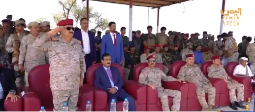 وزير الدفاع ومحافظ شبوة يشهدان عرضاً عسكرياً مهيباً في محور عتق