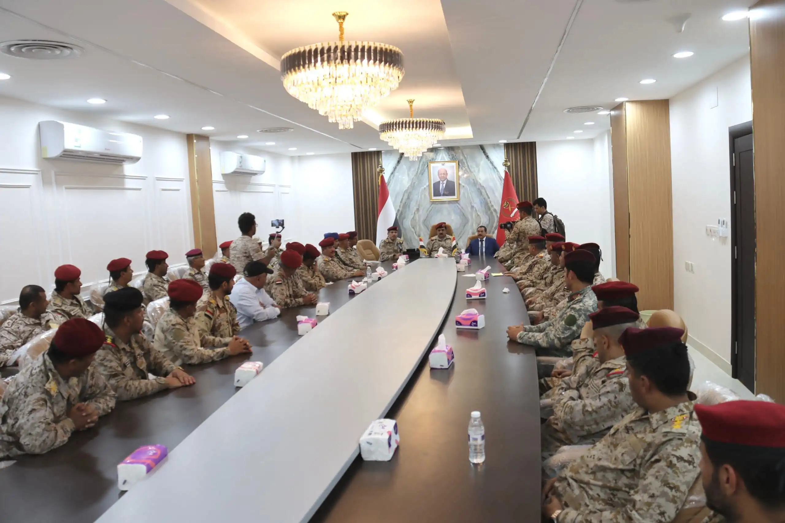 واستمع وزير الدفاع، الى مداخلات القادة العسكريين واحتياجاتهم..مؤكداً ان القيادة السياسية والعسكرية لن تتوان عن توفير كافة احتياجاتهم ومتطلباتهم.