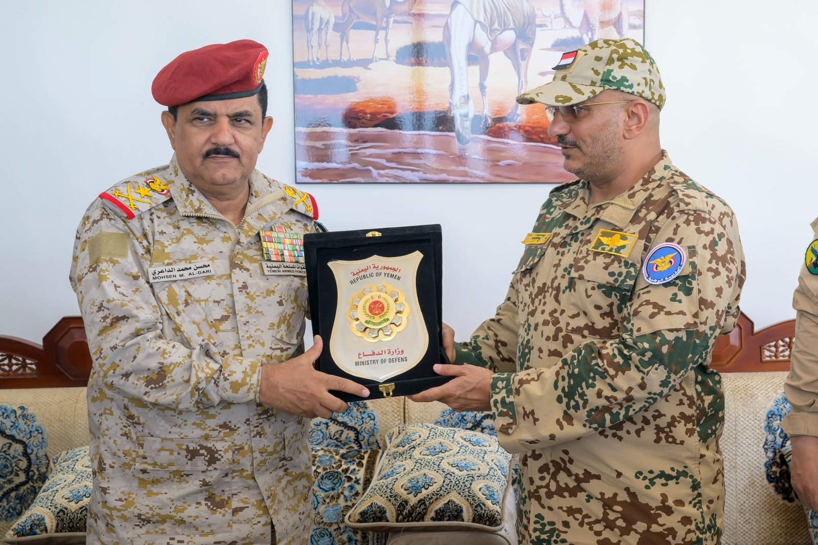 وزير الدفاع يكرّم طارق صالح بدرع الوزارة تقديراً لجهوده الوطنية