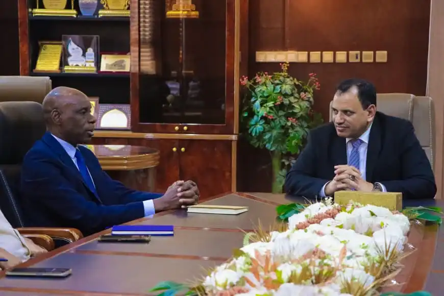 بحث وزير الزراعة والري والثروة السمكية، سالم السقطري، اليوم، في العاصمة المؤقتة عدن، مع القائمَ بأعمال الممثل المقيم لمنظمة الأغذية والزراعة للأمم المتحدة (الفاو) في اليمن آدم ياو، سبل تعزيز التعاون في المشاريع والبرامج الزراعية والسمكية المنفذة من المنظمة.