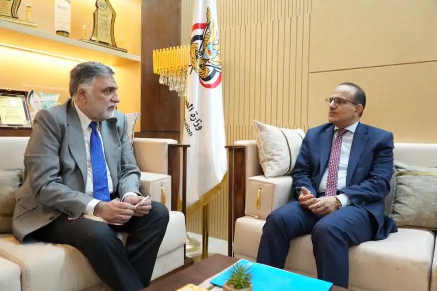 بحث وزير الصحة العامة والسكان، الدكتور قاسم بحيبح، اليوم، بالعاصمة الموقتة عدن، مع ممثل منظمة الصحة العالمية لدى اليمن، سيد جعفر، سبل تعزيز النظام الصحي الوطني، ومواجهة التحديات القائمة، مع التركيز على تطوير الخدمات الصحية بما يحقق استدامة النظام الصحي ويرتقي بنوعية الرعاية الصحية الأولية والثانوية.