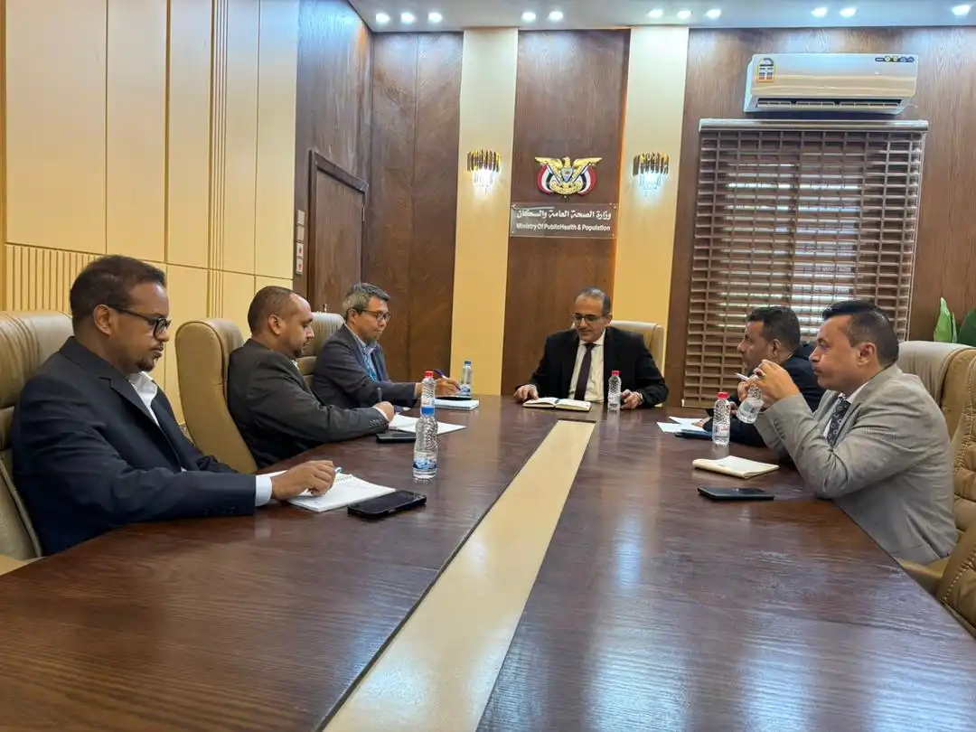 بحث وزير الصحة العامة والسكان، الدكتور قاسم بحيبح، اليوم الإثنين، في العاصمة المؤقتة عدن، مع نائب ممثل منظمة اليونيسيف في اليمن، مياو نيموتو، سبل تعزيز التعاون المشترك في القطاع الصحي، ضمن جهود دعم برامج التحصين والرعاية الصحية في البلاد.